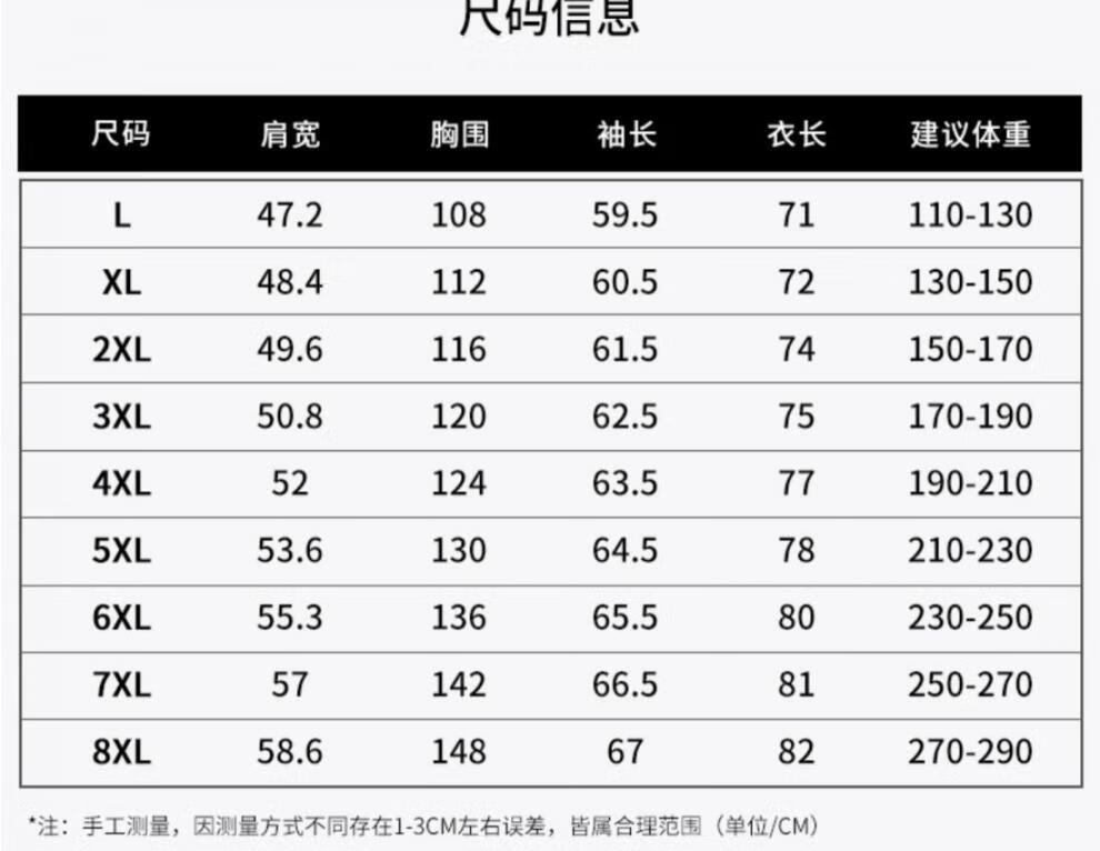 China (cm) 165 / 88-90 170 / 96-98 175 / 108-110 180 / 118-122 185 / 126-130