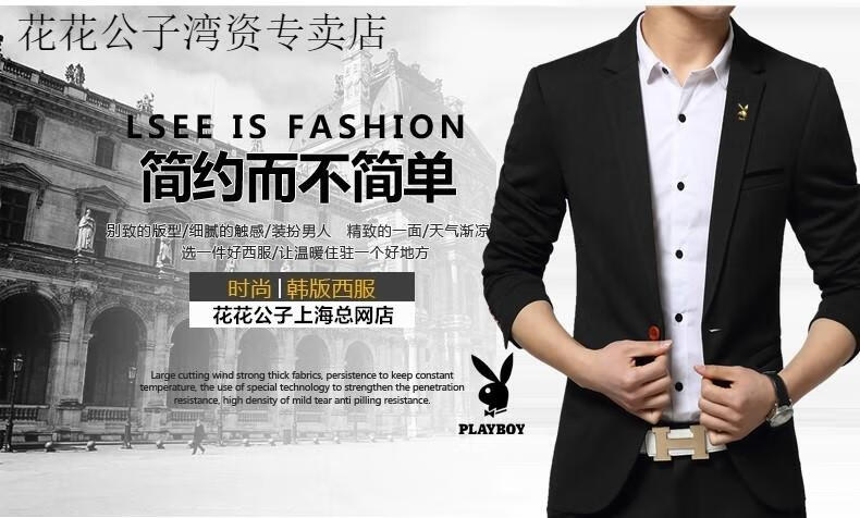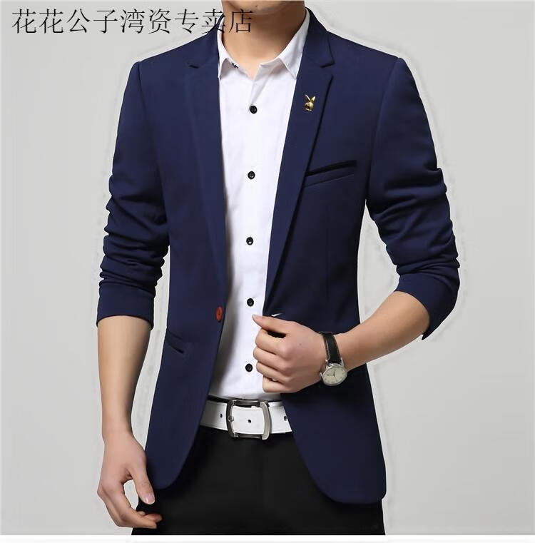 Playboy (PLAYBOY) casual suit men's Korean version slim small suit youth trendy spring and autumn thin coat business casual top navy blue 4XL 160-175