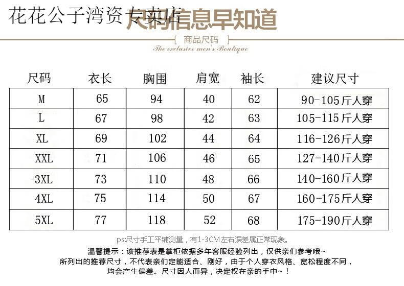 China (cm) 165 / 88-90 170 / 96-98 175 / 108-110 180 / 118-122 185 / 126-130