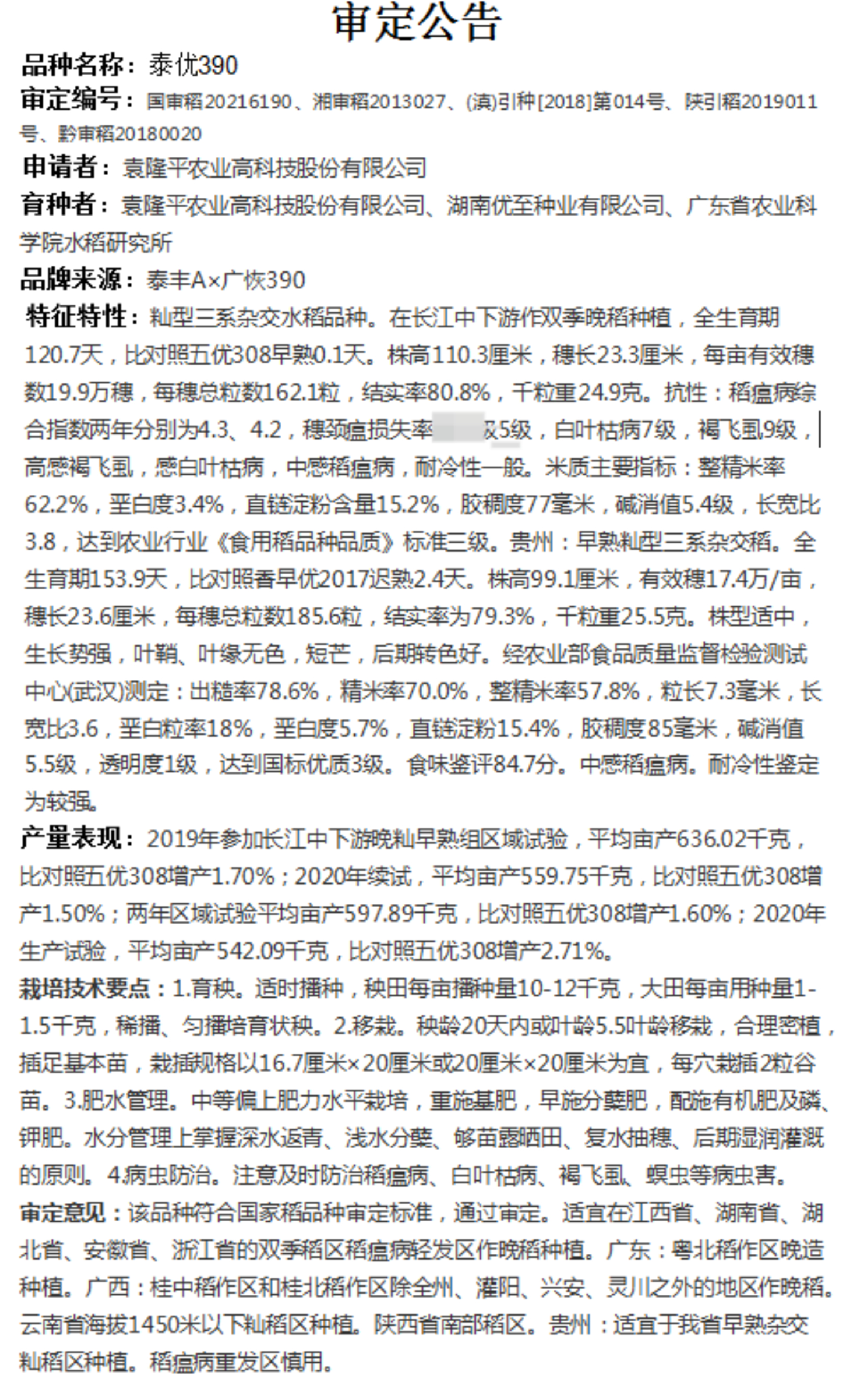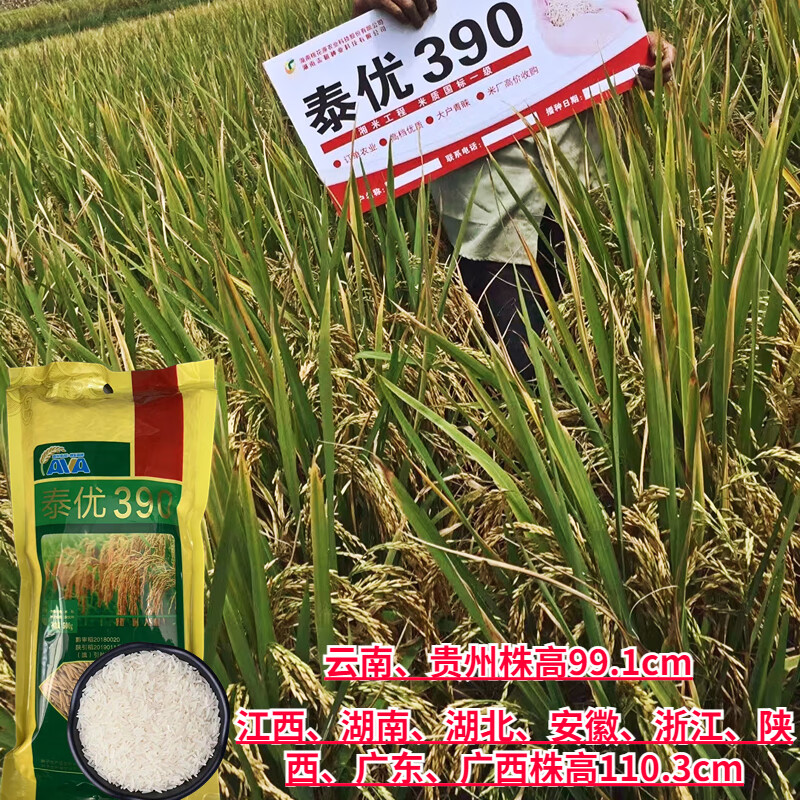香米型米粒细长水稻种子泰优390矮杆抗倒适应性广产量高 泰优390水稻种子2斤装