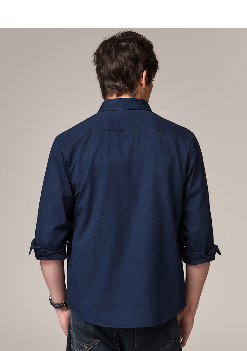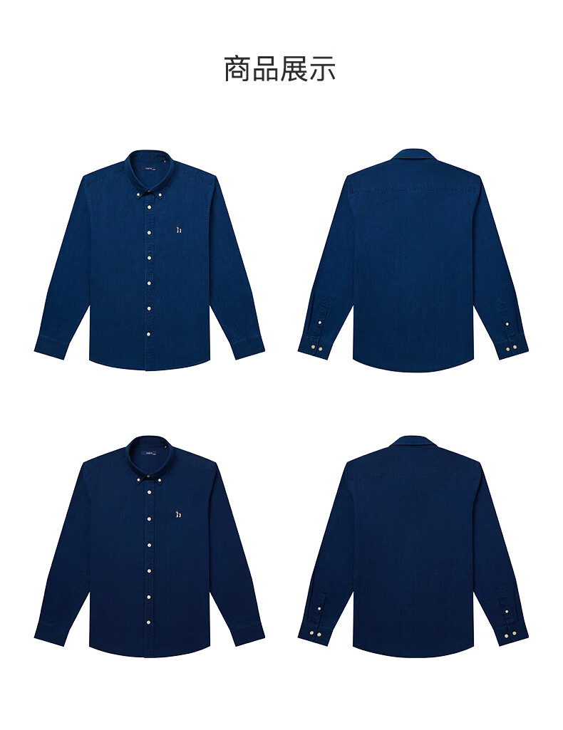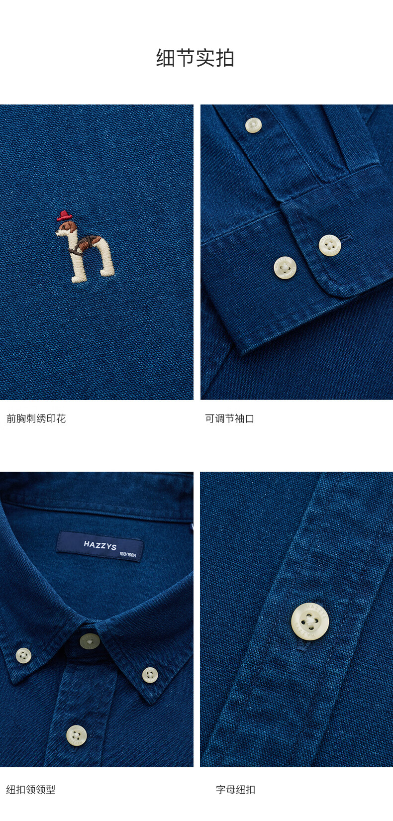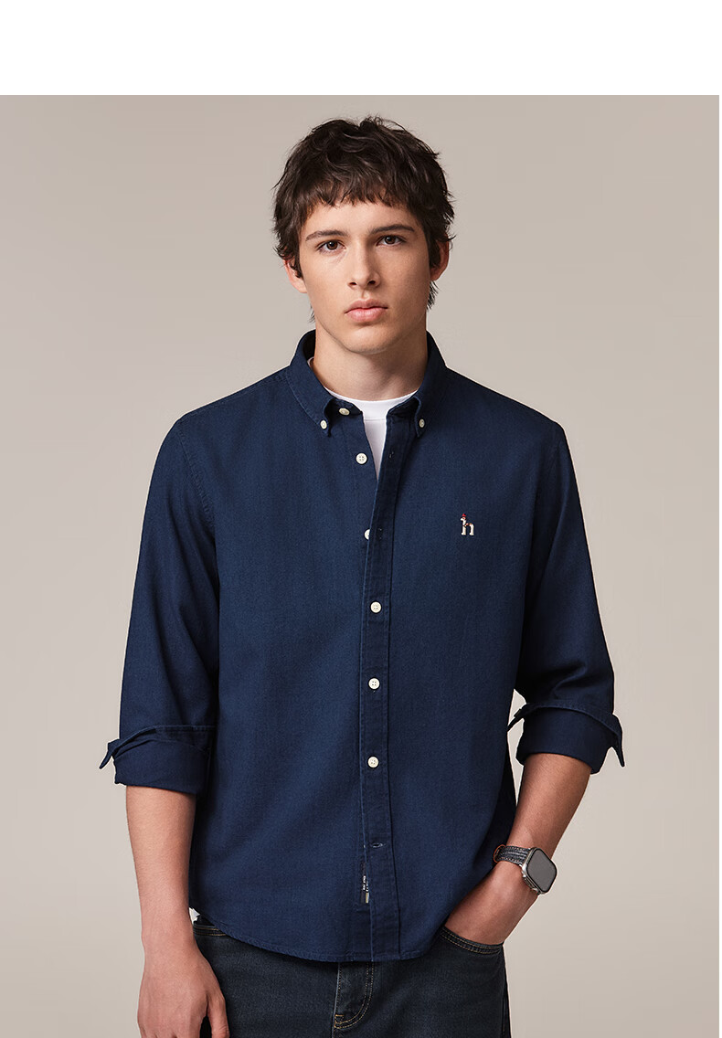 哈吉斯(HAZZYS)男装 秋款纯棉男士衬衣外穿牛仔长袖衬衫男ASCZK1CCX44 深蓝色DL L (175/96A 48)