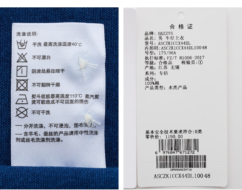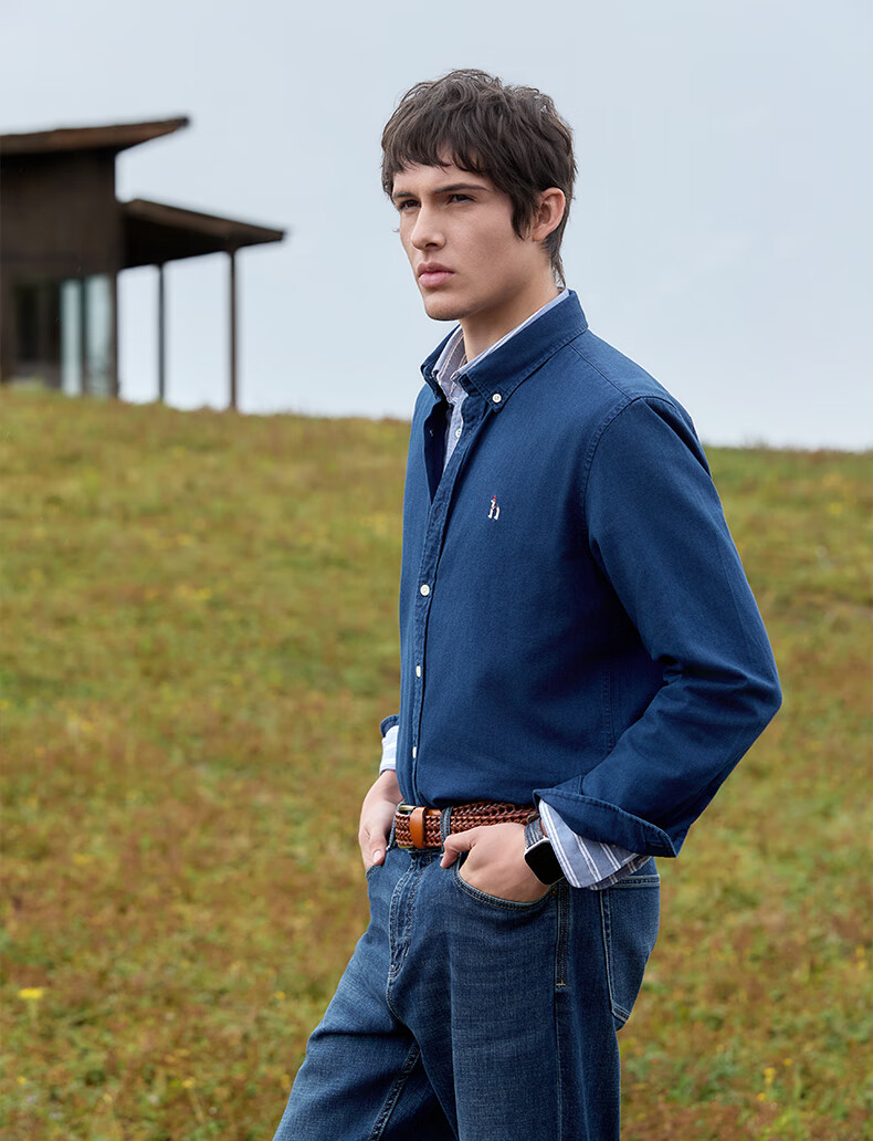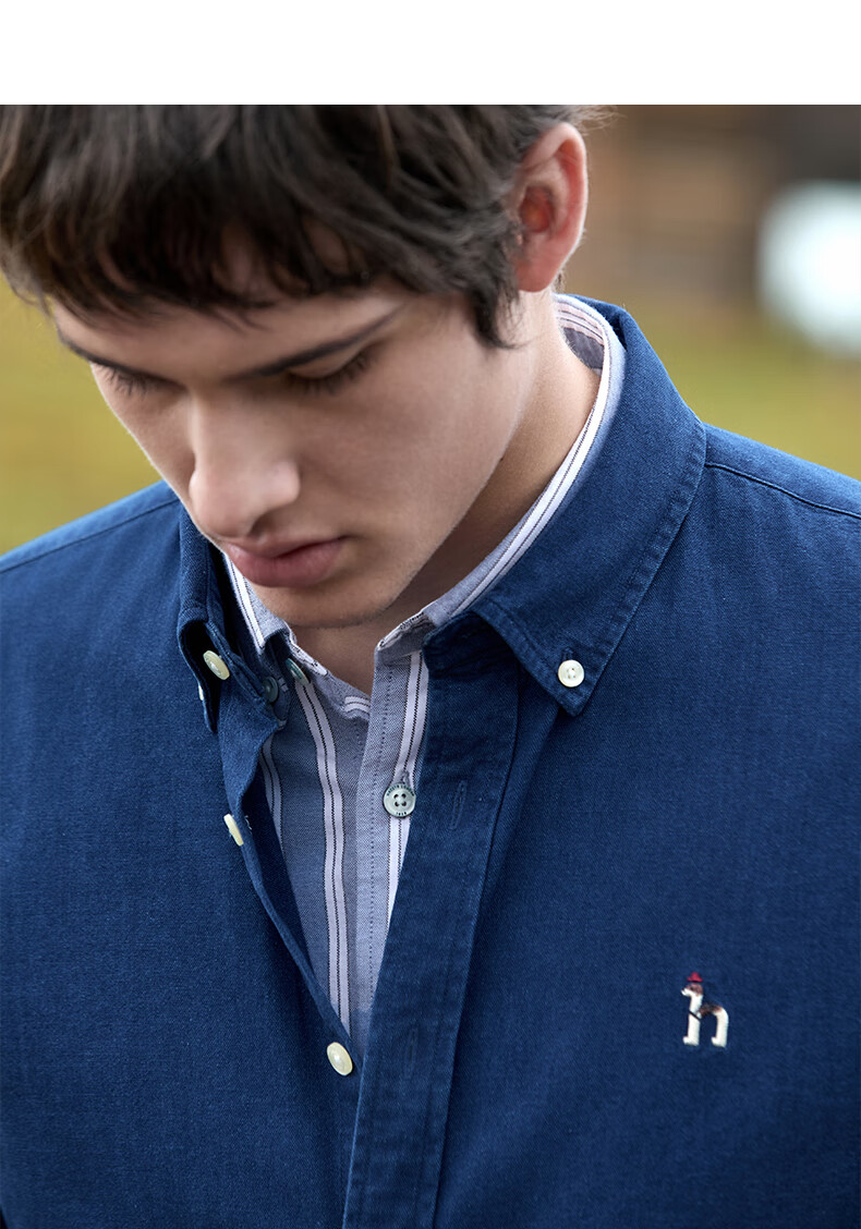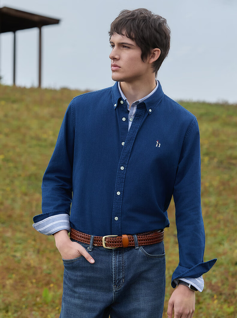 哈吉斯(HAZZYS)男装 秋款纯棉男士衬衣外穿牛仔长袖衬衫男ASCZK1CCX44 深蓝色DL L (175/96A 48)