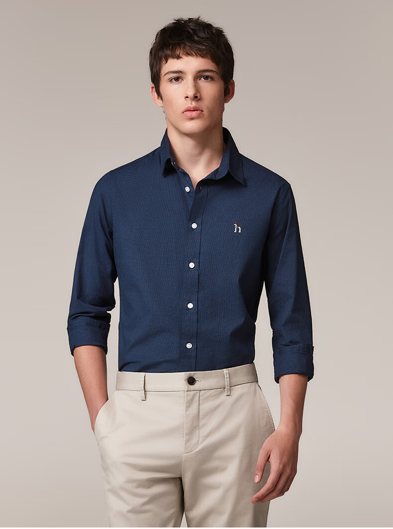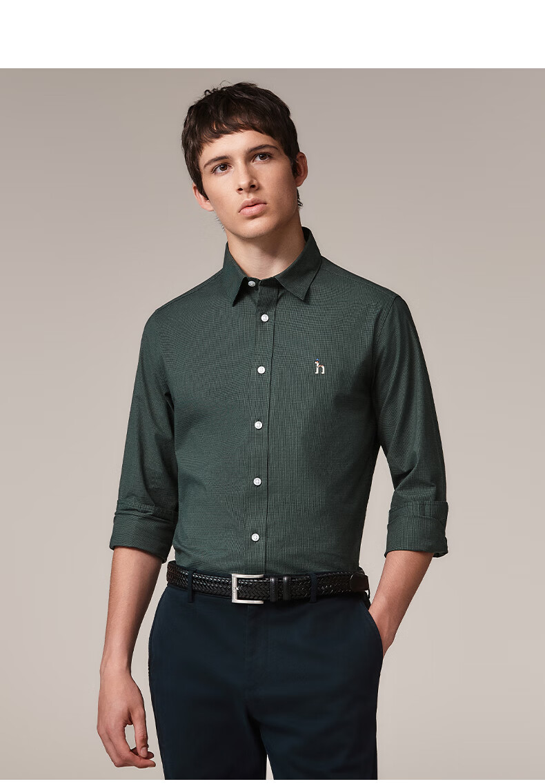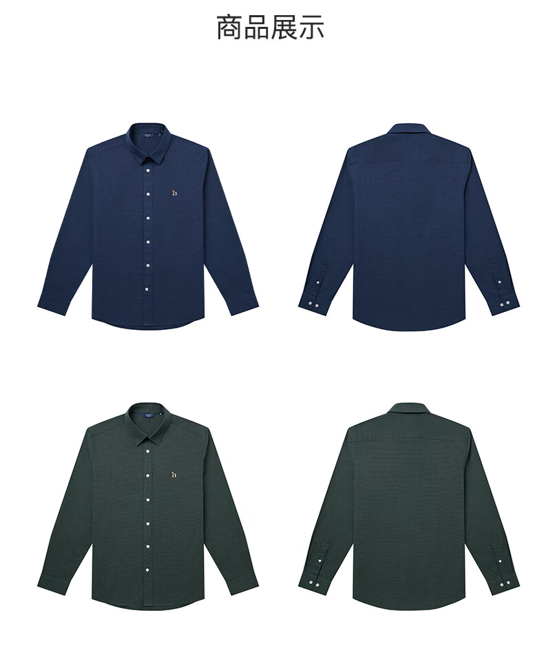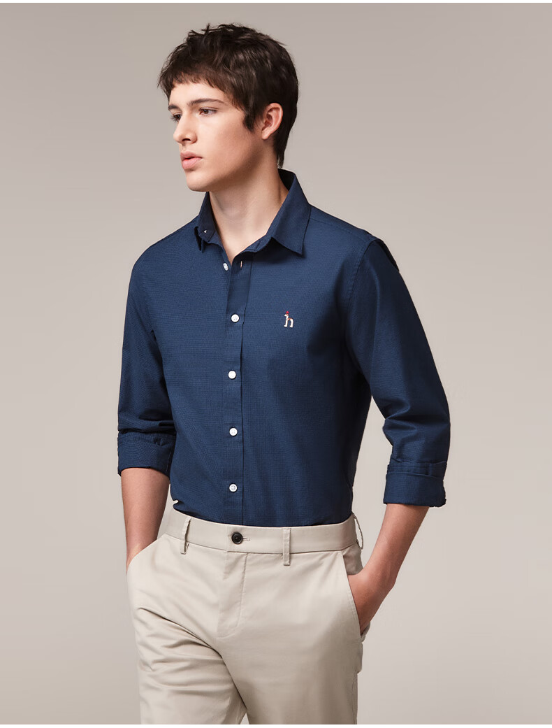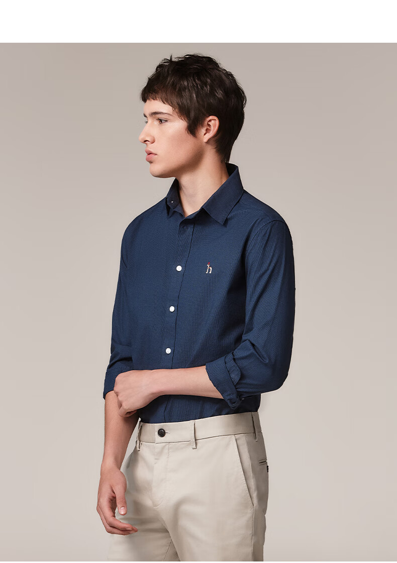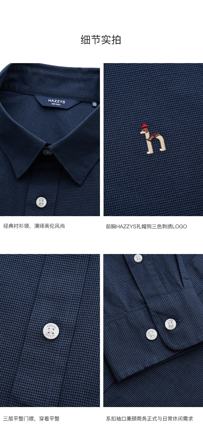 哈吉斯(HAZZYS)男装 秋冬款千鸟格男衬衣【莱卡】棉弹长袖衬衫男ASCZK1CDX41 蓝灰色GL XL (180/100A 50)
