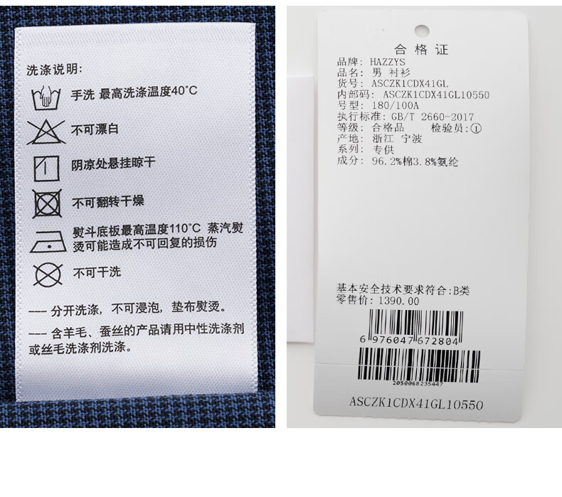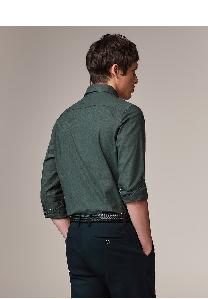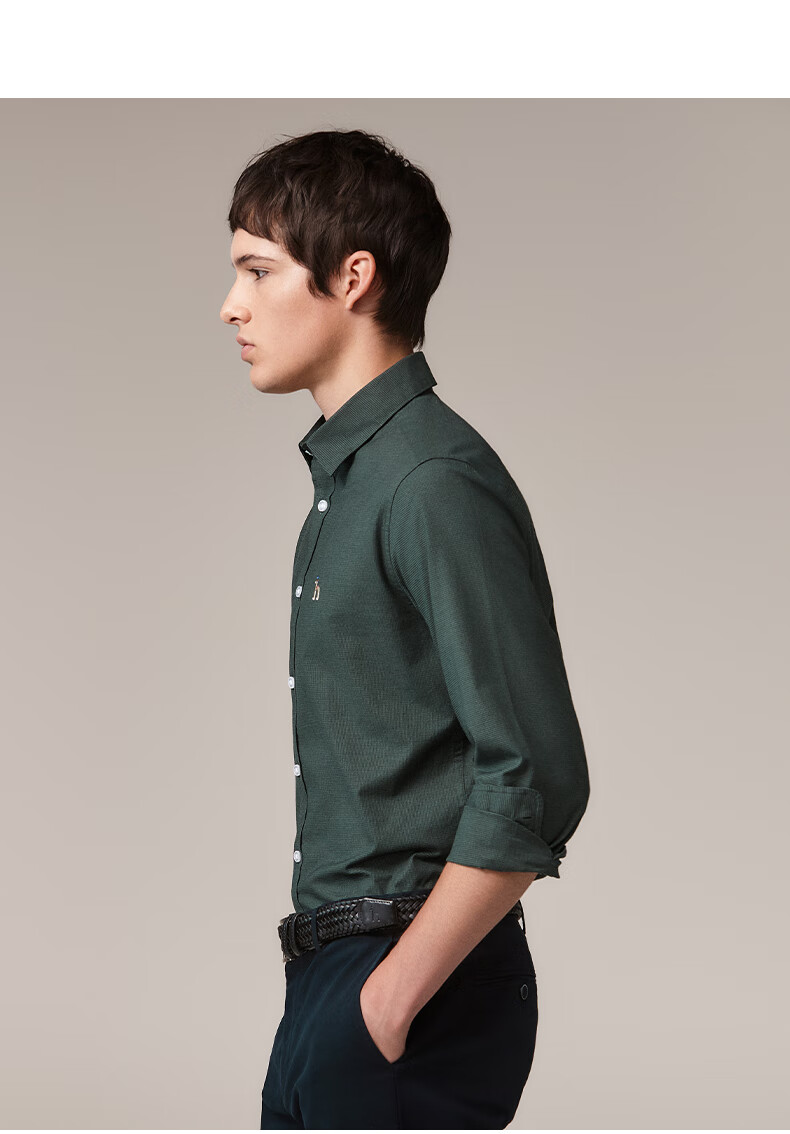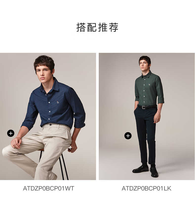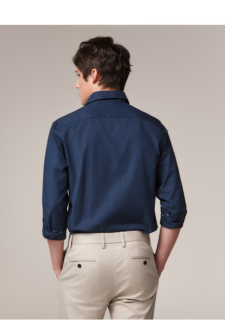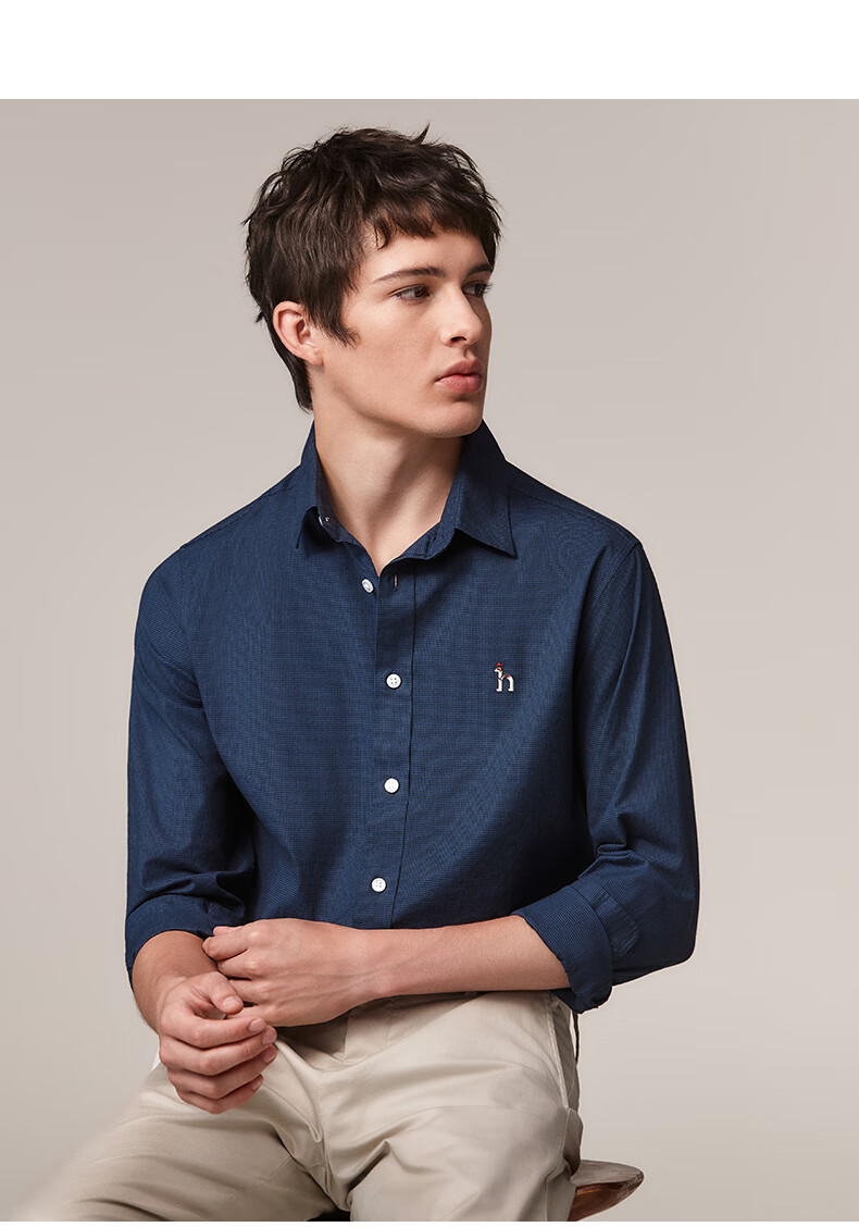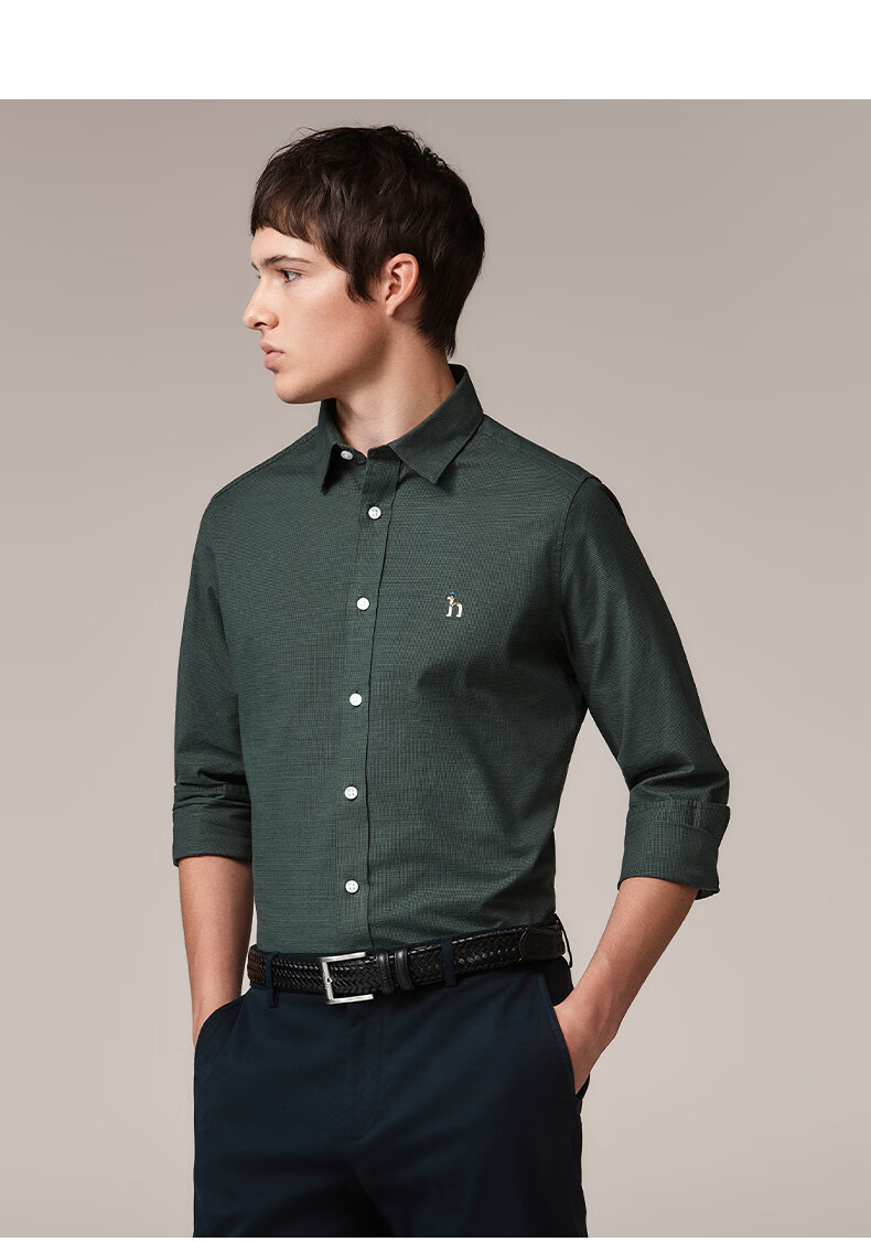 哈吉斯(HAZZYS)男装 秋冬款千鸟格男衬衣【莱卡】棉弹长袖衬衫男ASCZK1CDX41 蓝灰色GL XL (180/100A 50)