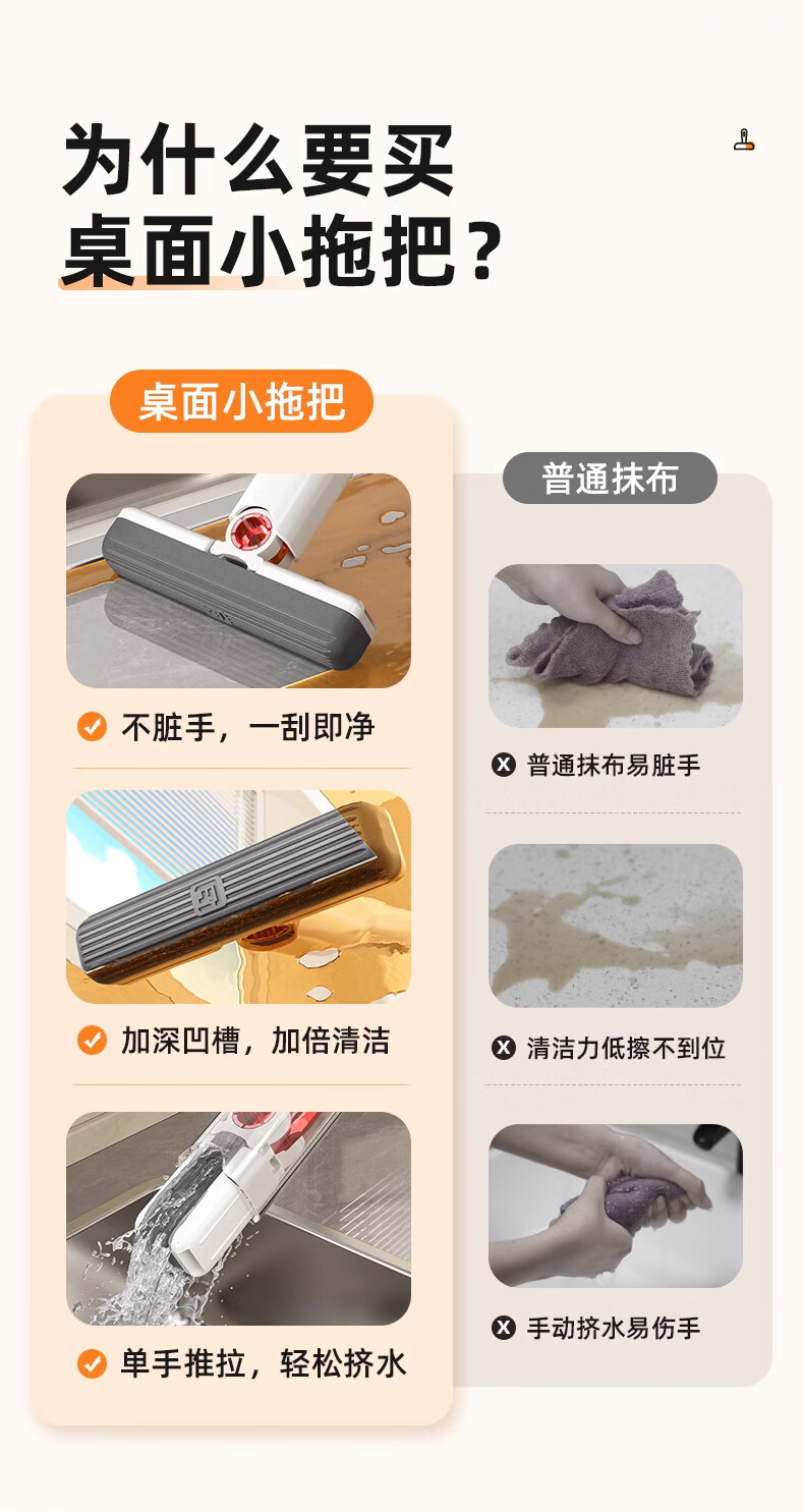多功能清洁桌面小拖把迷你拖把免手洗吸水海绵卫生间厨房抹布 【2025新款】手持小拖把1个
