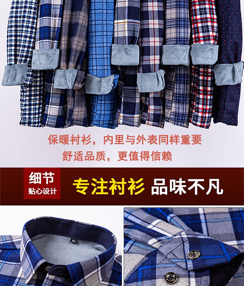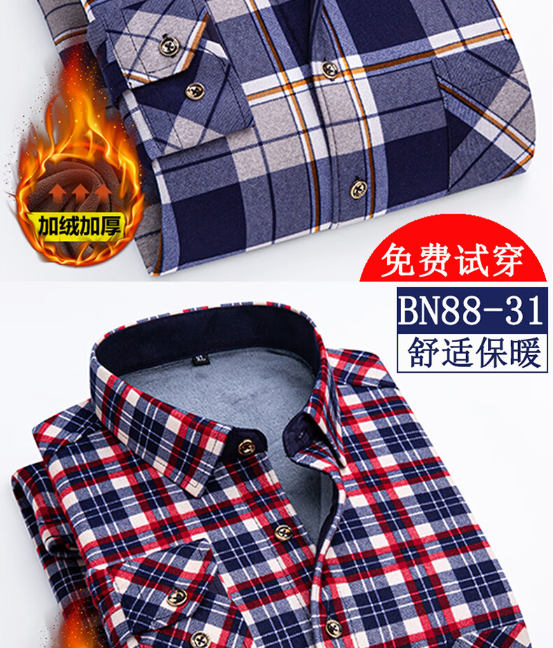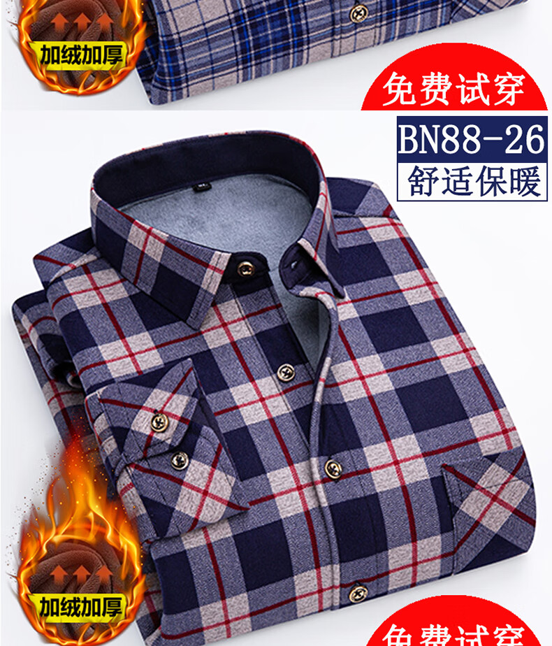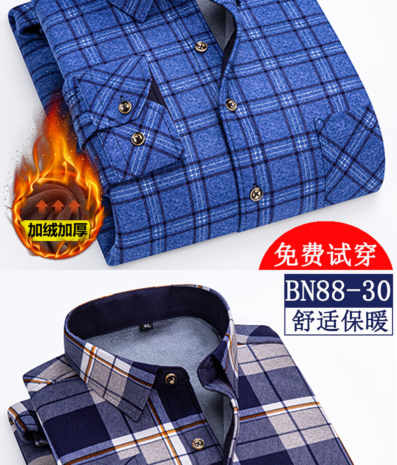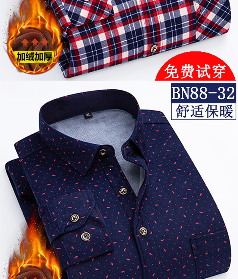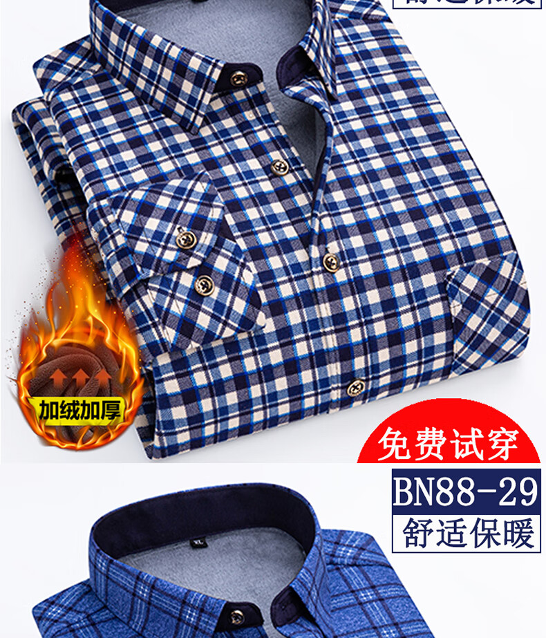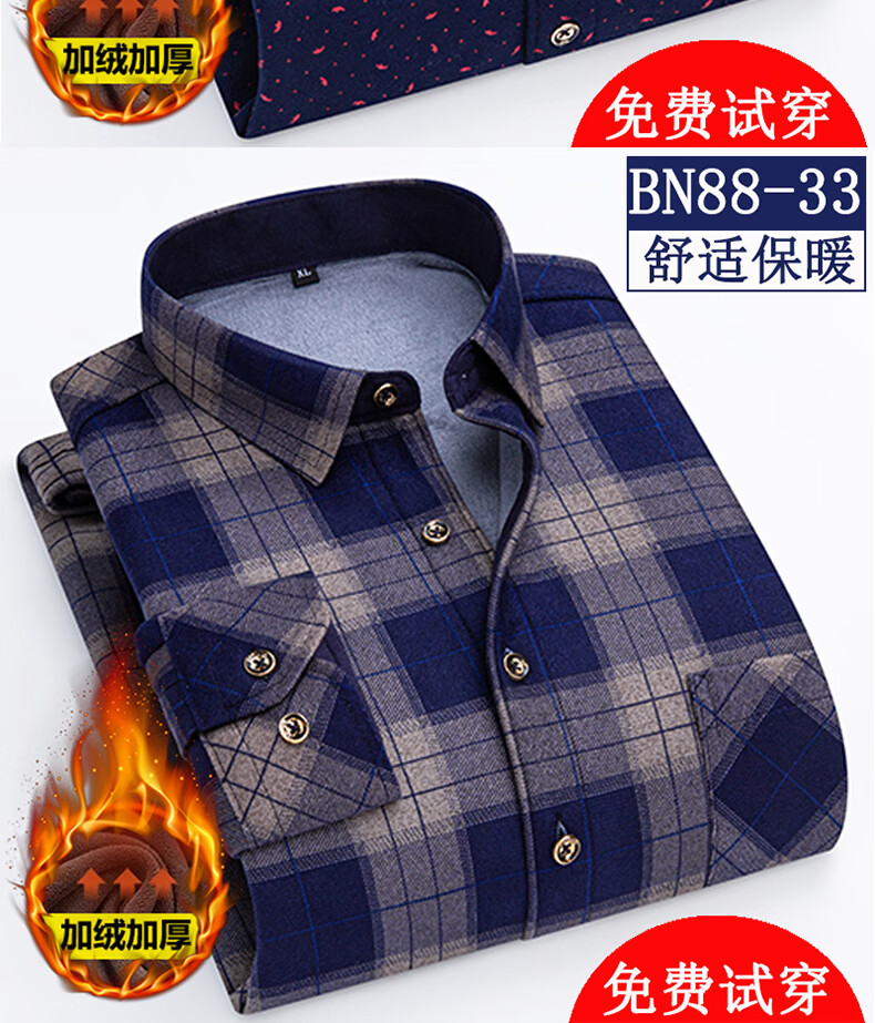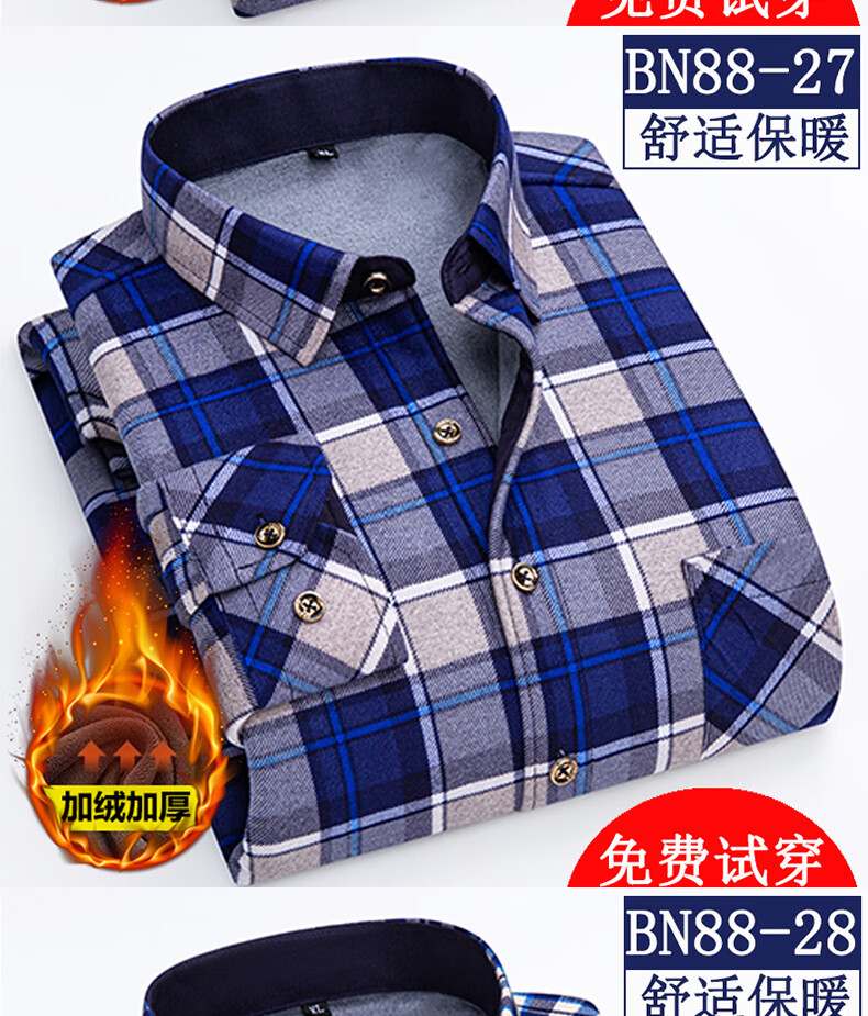 2025 Winter Warm Shirt Men's Velvet Thickened Plaid Long Sleeve Shirt Business Casual Middle-aged and Elderly Dad Clothes JY88-1 Velvet Thickened 2XL Recommended 125-140 Jin Jin equals 0.5 kg
