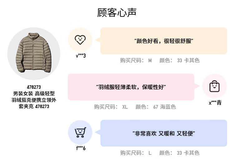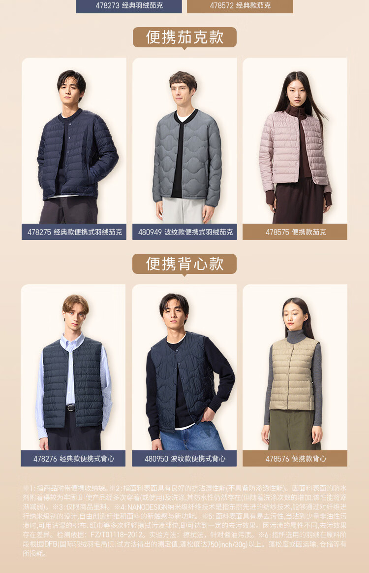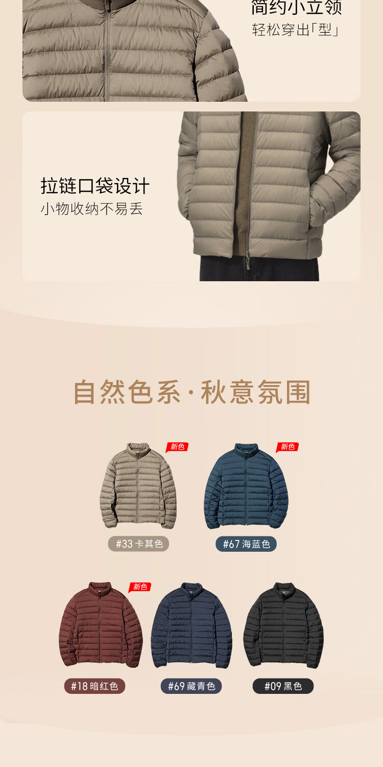 优衣库男装女装高级轻型羽绒茄克便携立领外套排骨夹克478273 478273/69藏青色 L