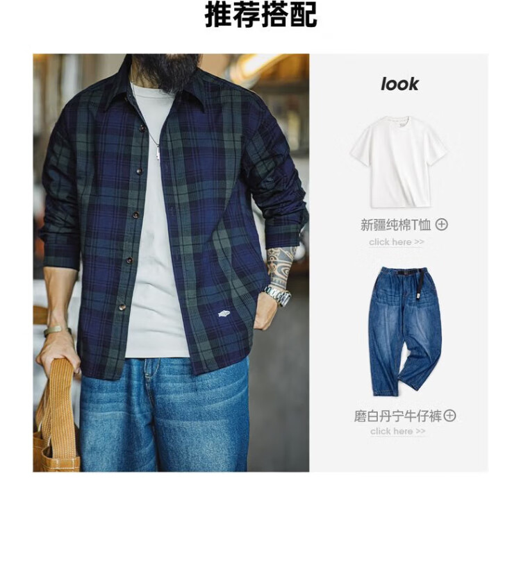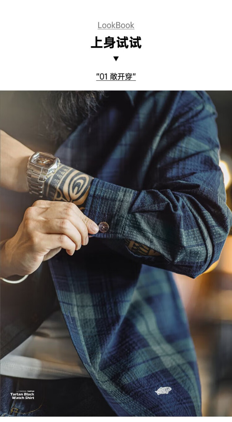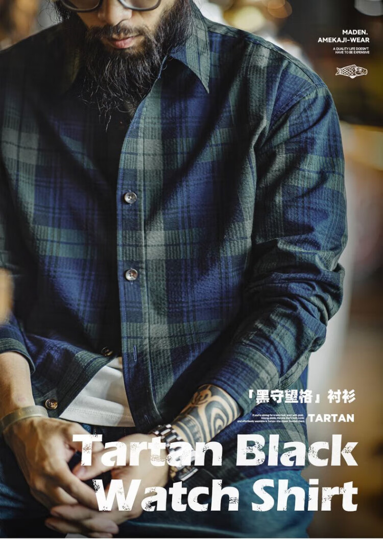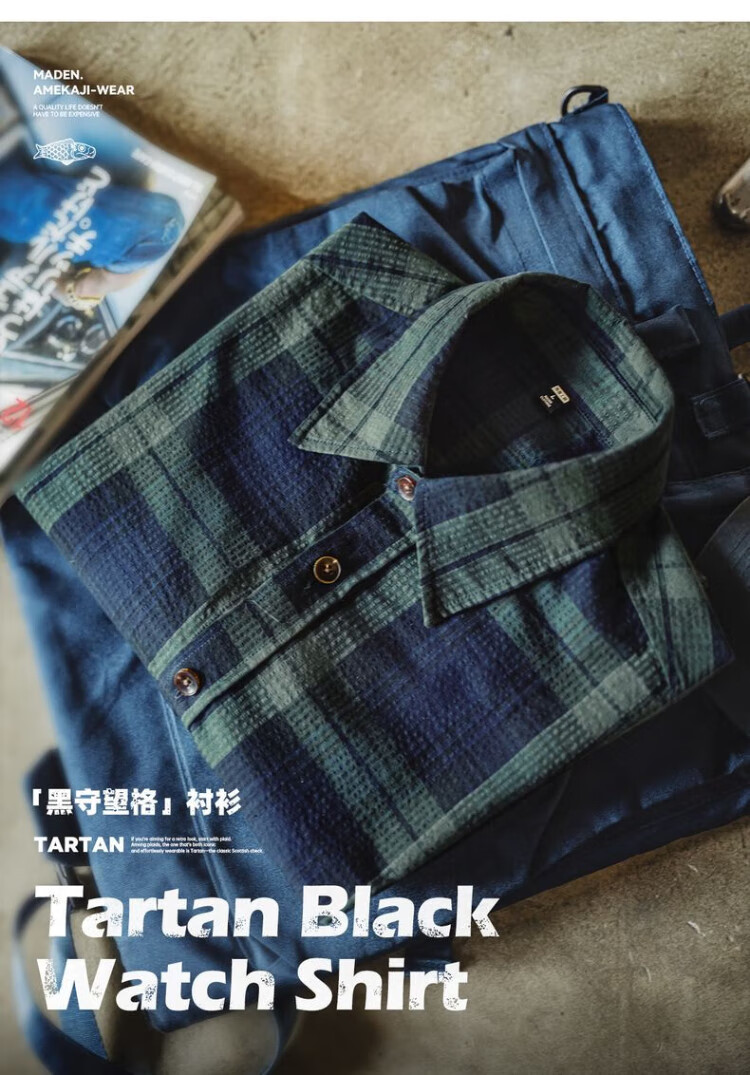 Рабочая одежда Madden, американская ретро сине-зеленая клетчатая рубашка с длинными рукавами, тонкая рубашка с текстурой из чистого хлопка, мужская осенняя сине-зеленая клетчатая рубашка M