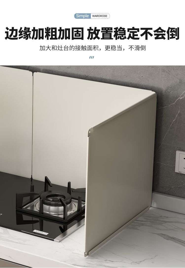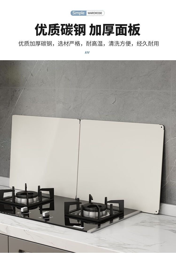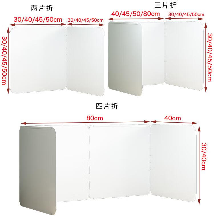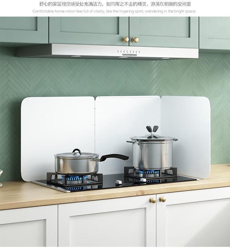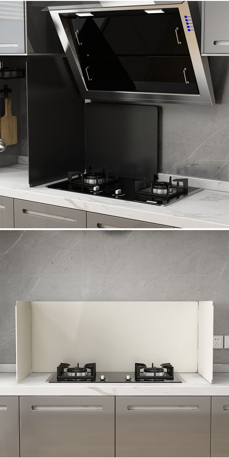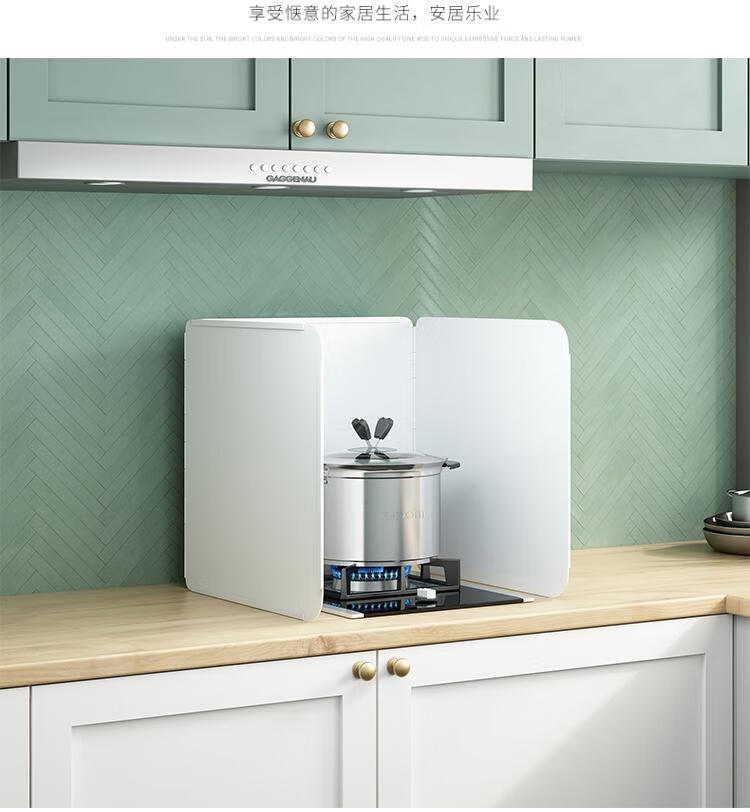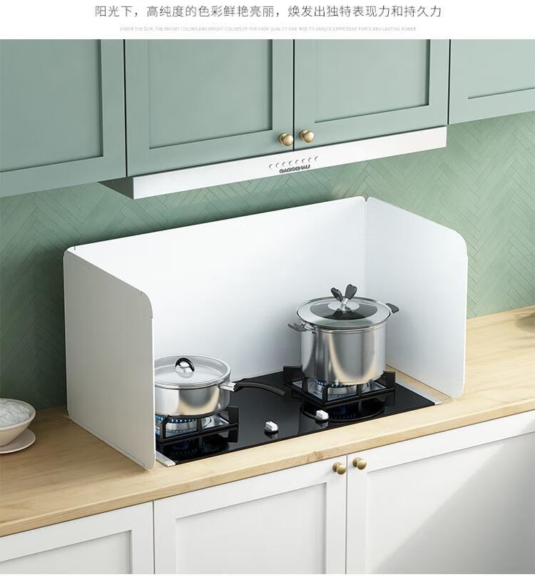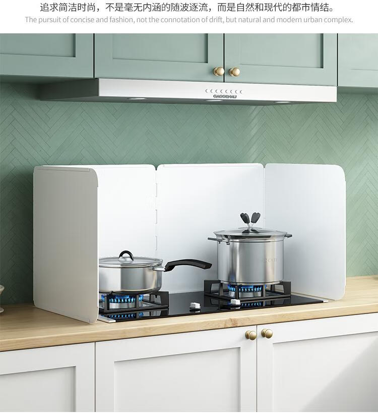 Kitchen oil baffle, high temperature resistant folding oil baffle for gas stove, cooking splash-proof range hood heat insulation baffle, height 40* length 40* depth 40, three-piece fold, white model