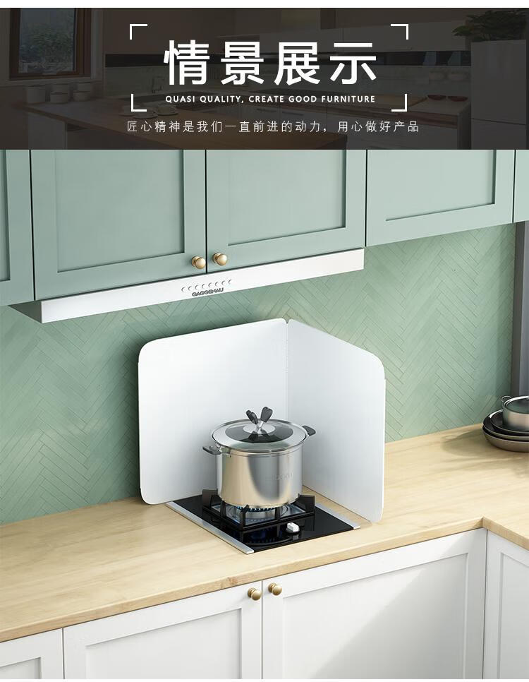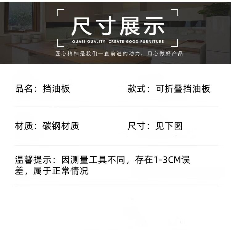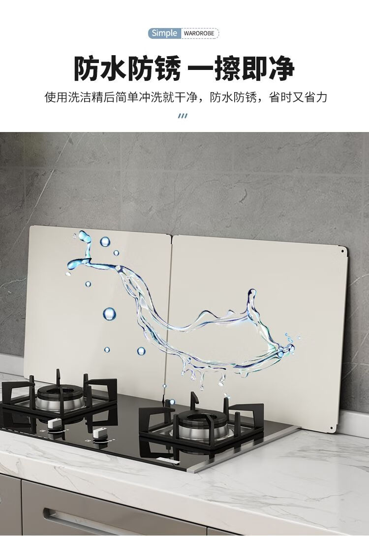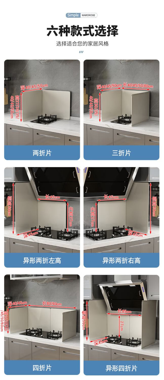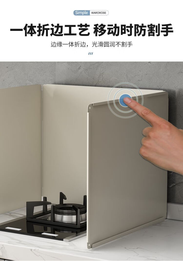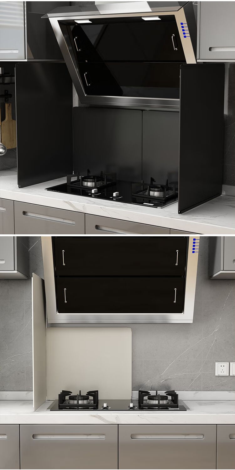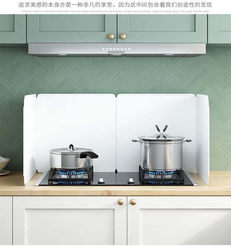 Kitchen oil baffle, high temperature resistant folding oil baffle for gas stove, cooking splash-proof range hood heat insulation baffle, height 40* length 40* depth 40, three-piece fold, white model