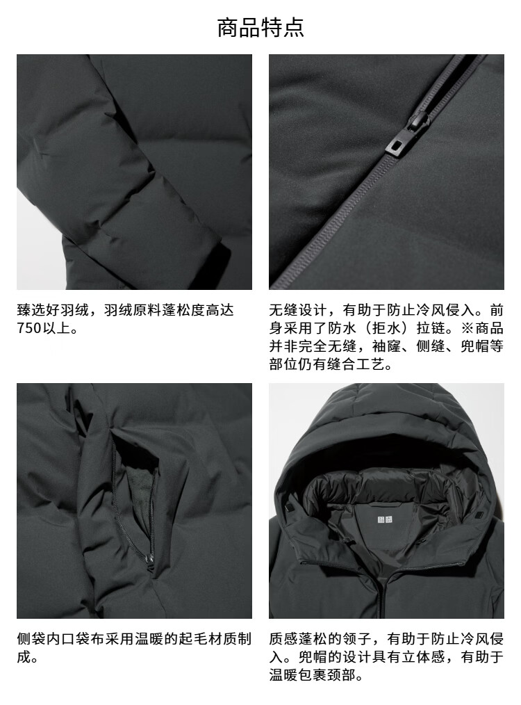 Uniqlo Мужская и женская бесшовная куртка-пуховик с капюшоном Пуховик 478279 09 Черный L