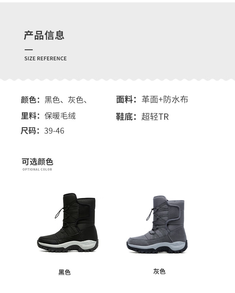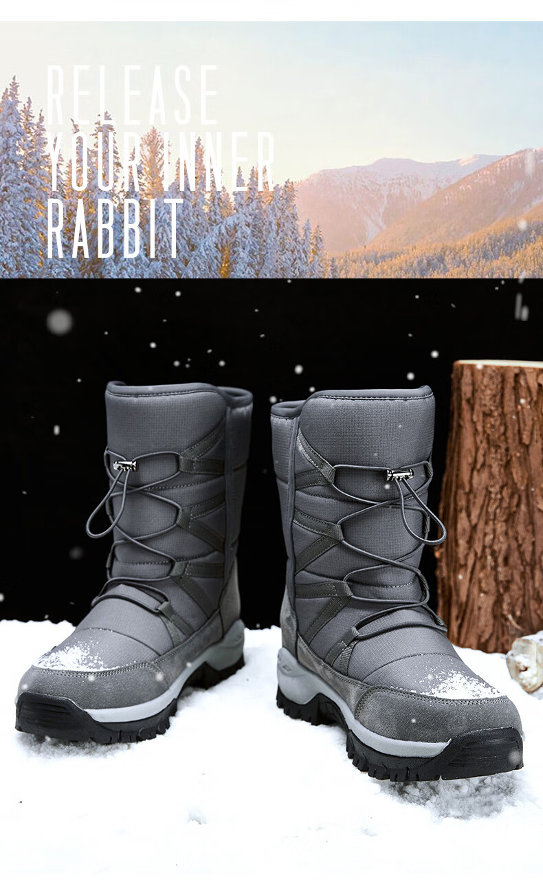 Xialu Northeast Schneestiefel Herren Samt Warme Anti-Rutsch-Skischuhe Double Eleven Grau 40