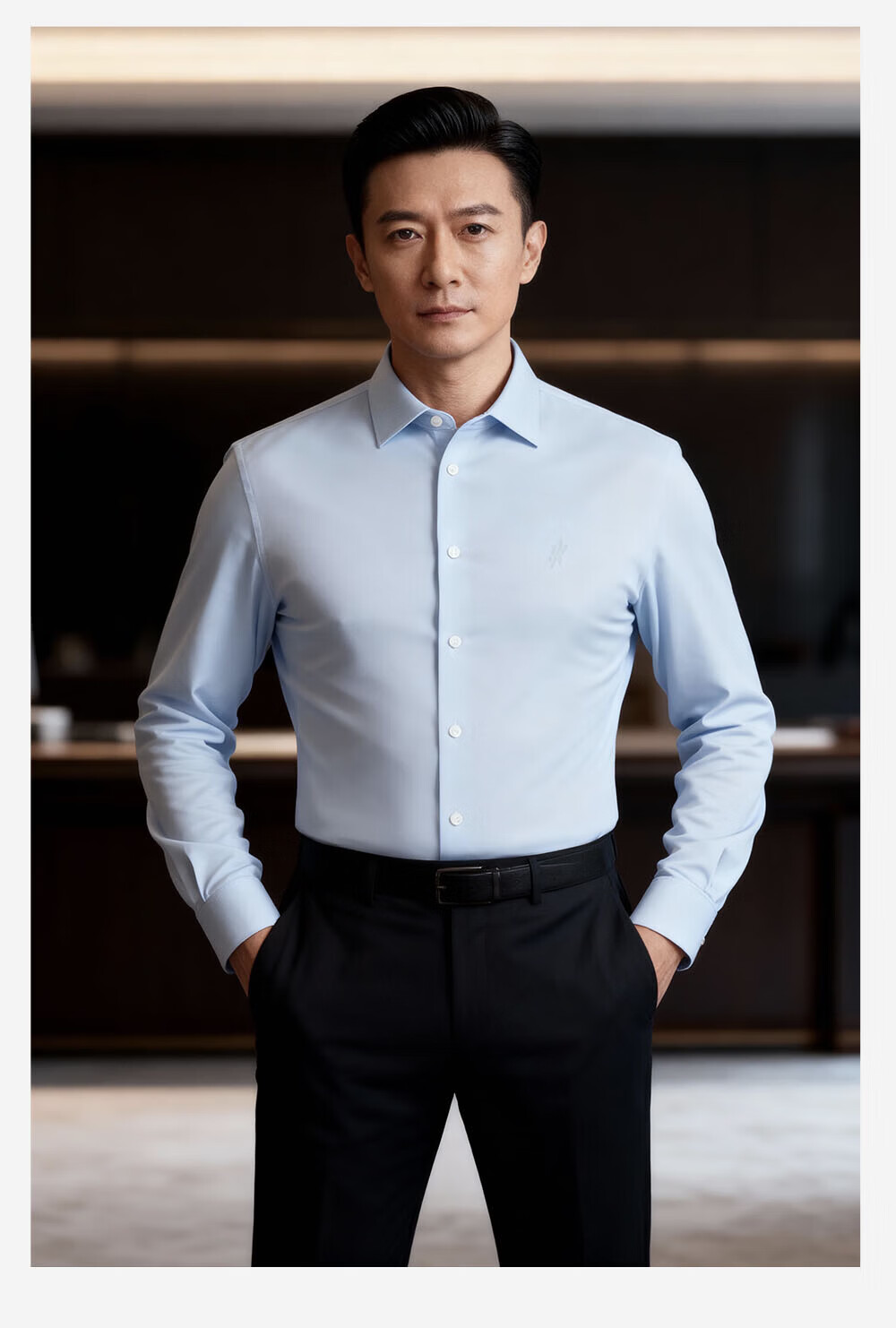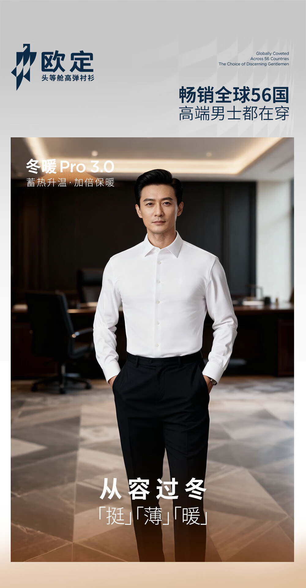 Ou Ding double air lock first class winter warm gray snow white Haokong blue high elastic plus velvet shirt men's warm spring shirt blue Haokong blue 42 (recommended 140-155Jin Jin equals 0.5 kg)