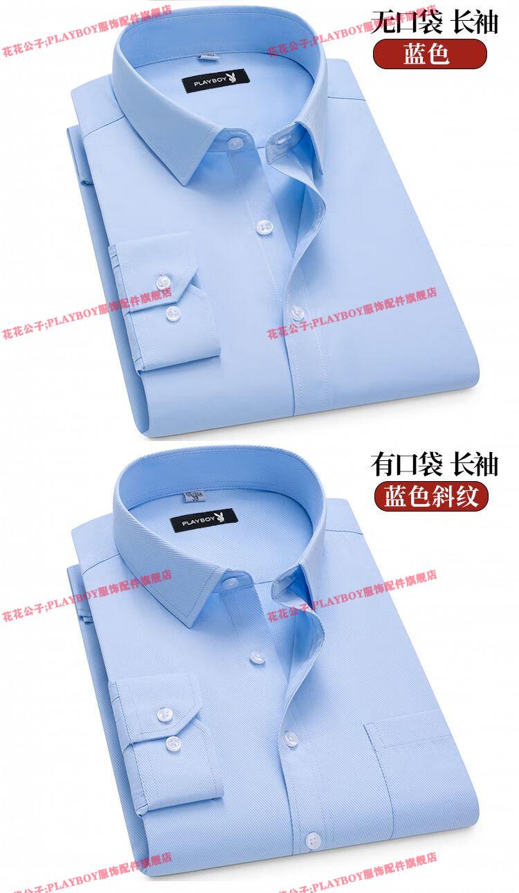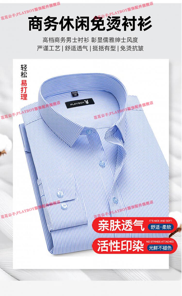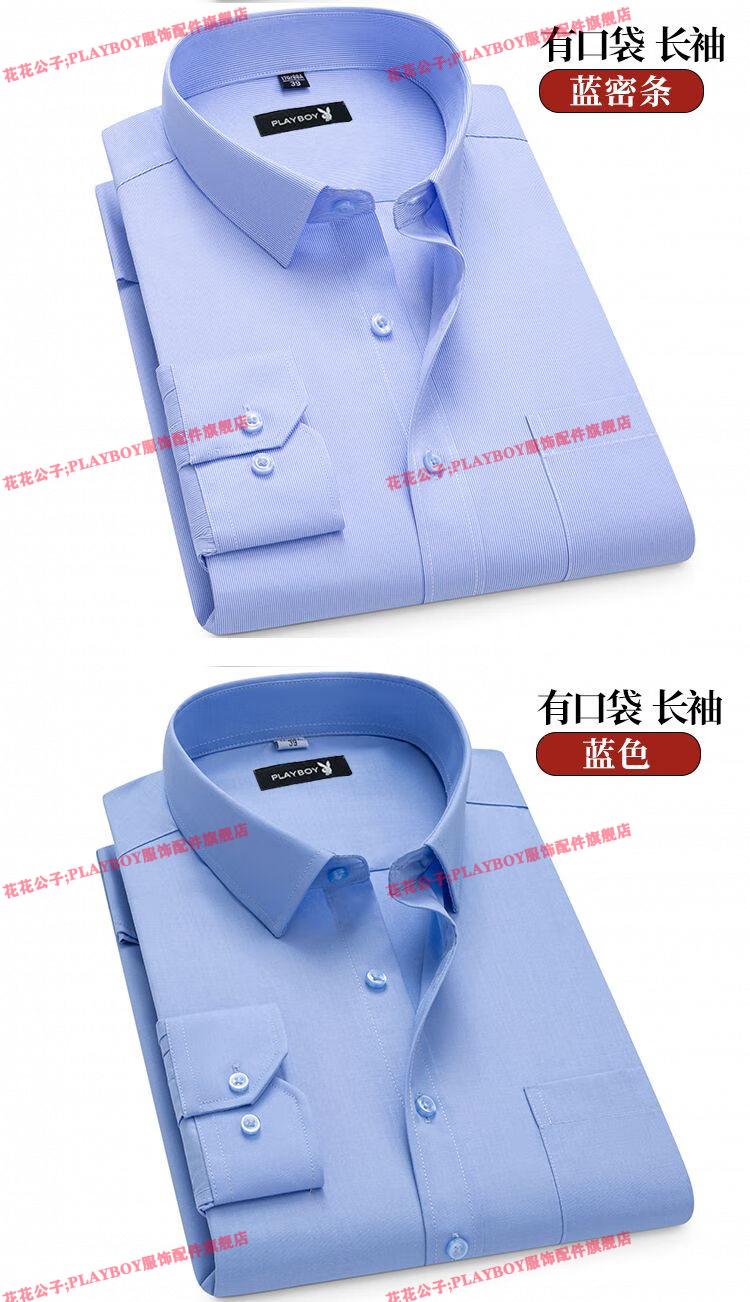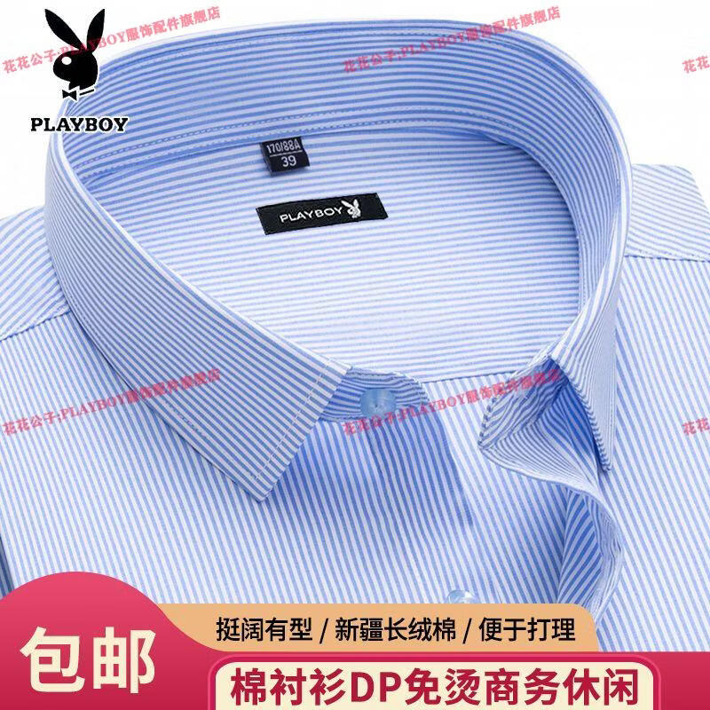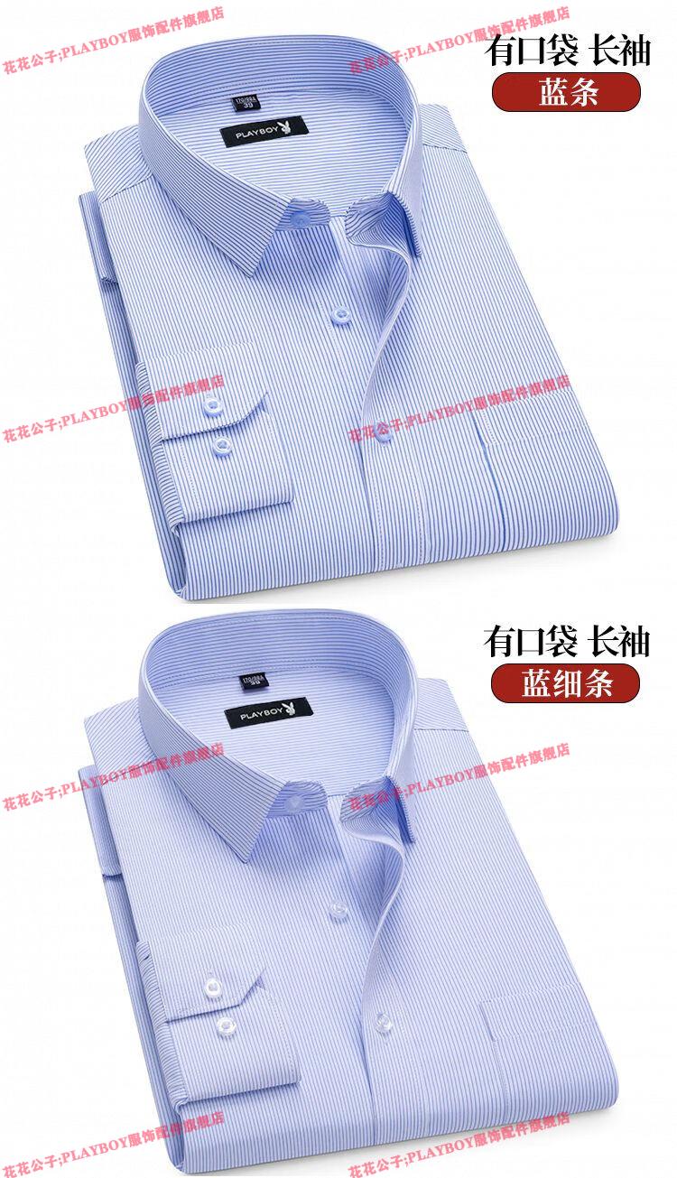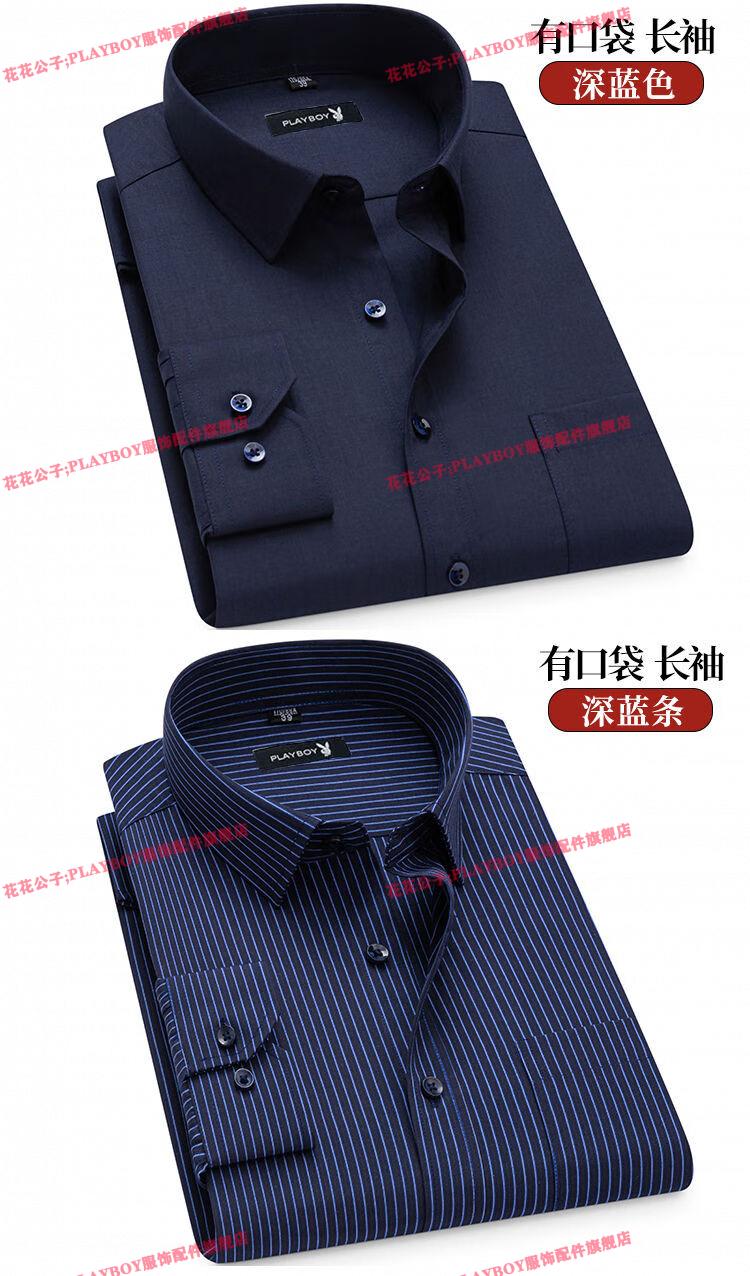 Playboy official authentic high-end long-sleeved shirt for middle-aged men, loose large size casual striped solid color non-iron shirt for men, blue thick strip (with pocket), long sleeve 40 (recommended 135-150 Jin Jin equals 0.5 kg)