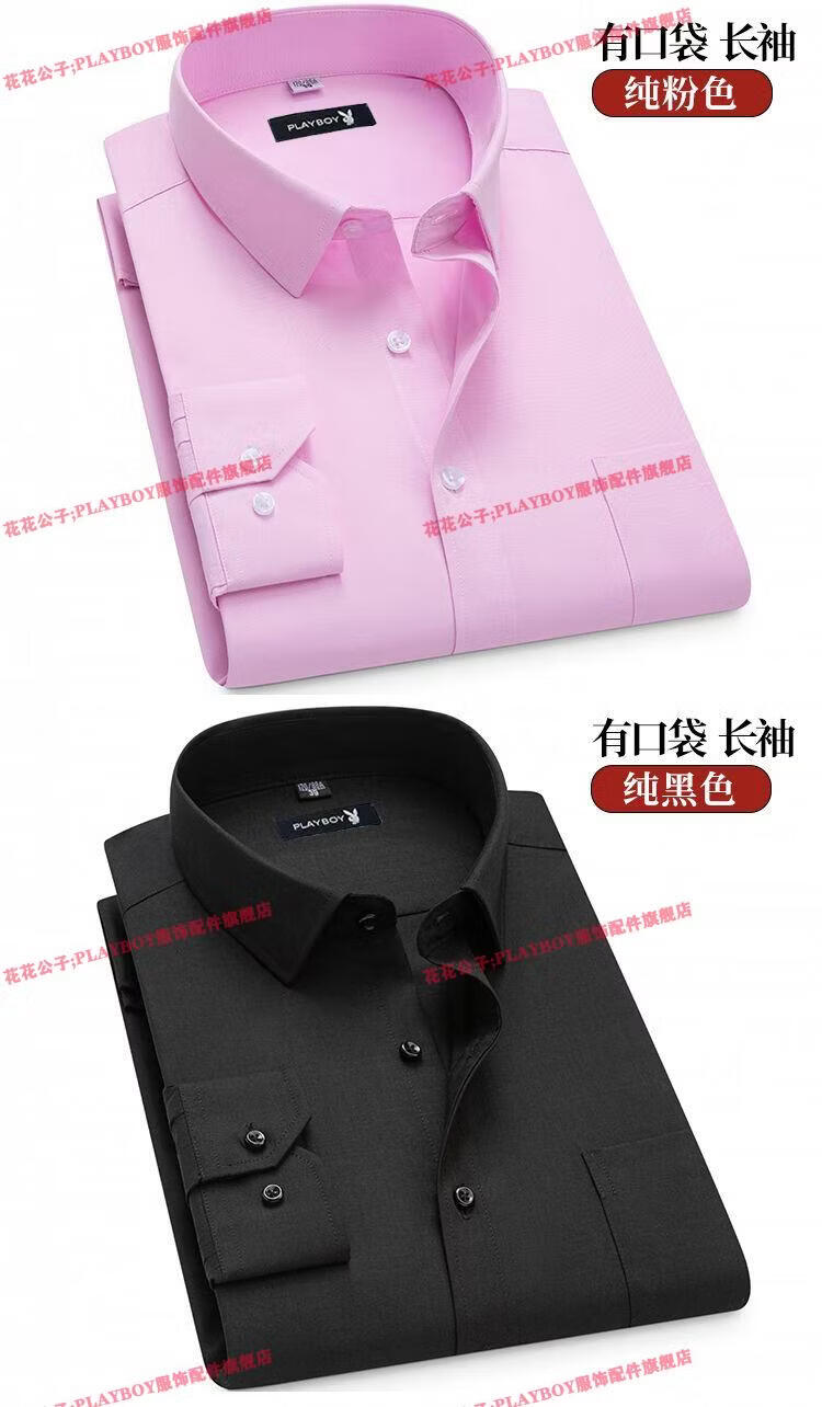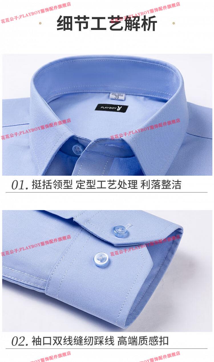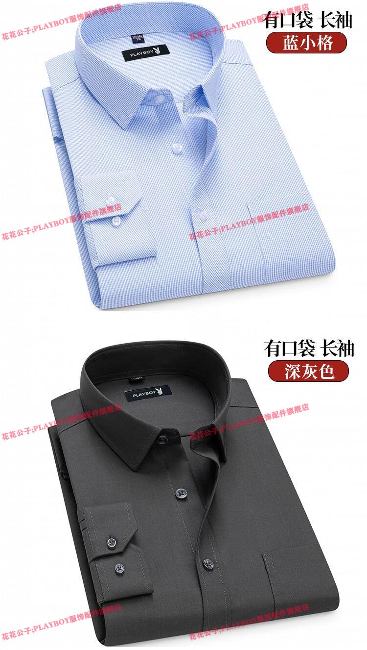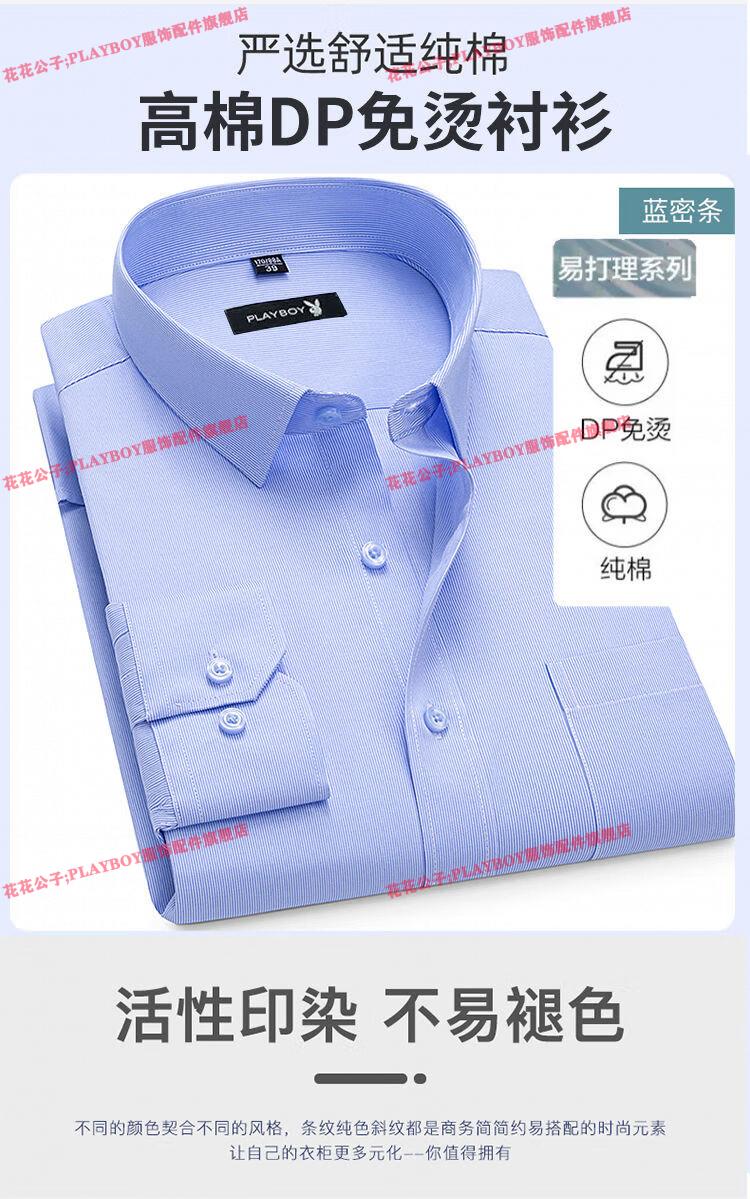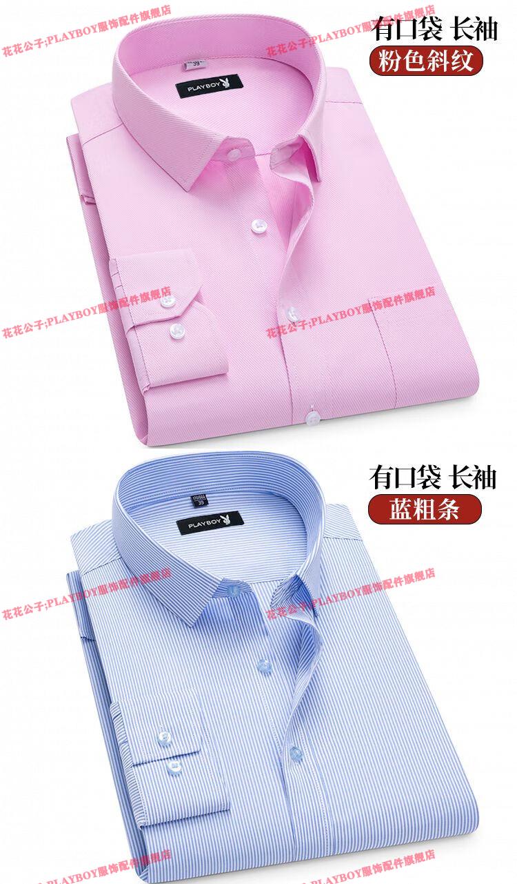 Playboy official authentic high-end long-sleeved shirt for middle-aged men, loose large size casual striped solid color non-iron shirt for men, blue thick strip (with pocket), long sleeve 40 (recommended 135-150 Jin Jin equals 0.5 kg)
