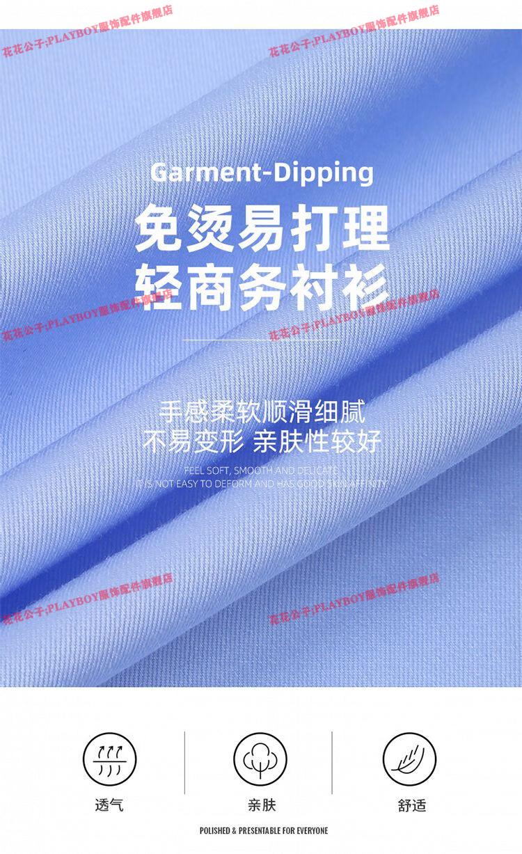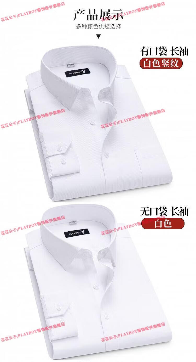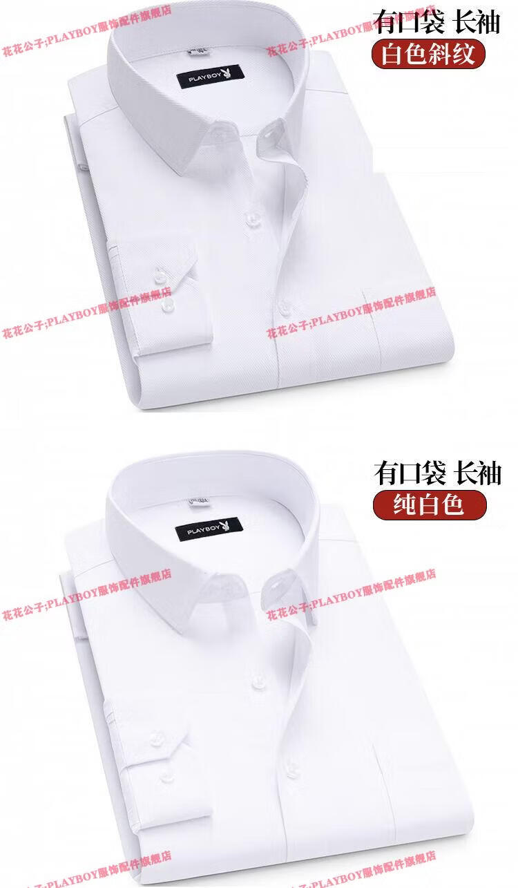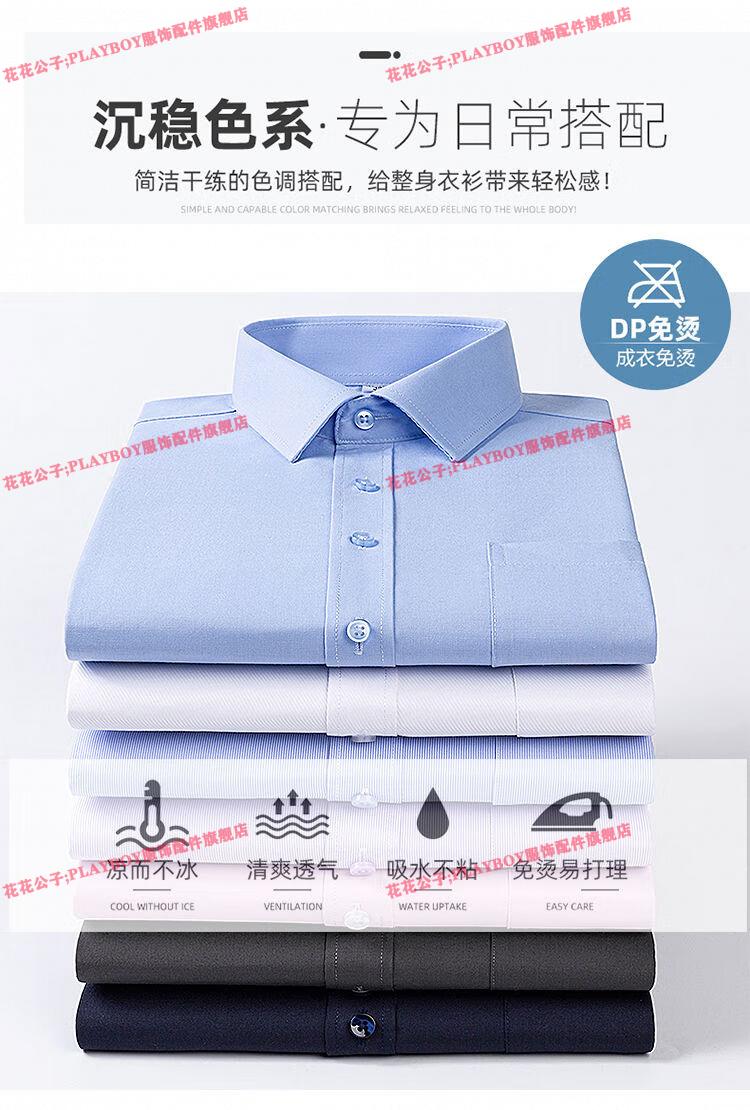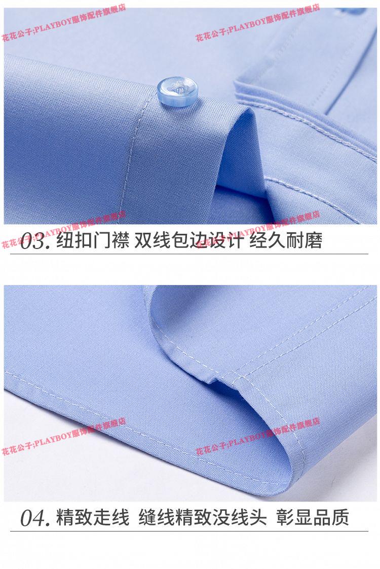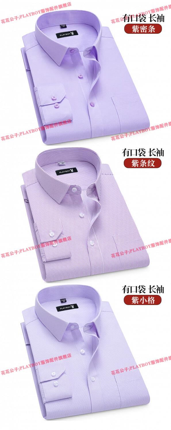 Playboy official authentic high-end long-sleeved shirt for middle-aged men, loose large size casual striped solid color non-iron shirt for men, blue thick strip (with pocket), long sleeve 40 (recommended 135-150 Jin Jin equals 0.5 kg)