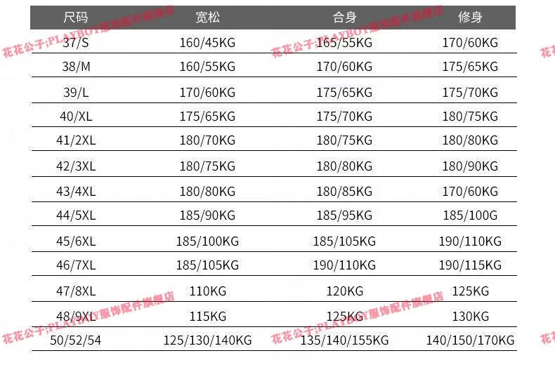 China (cm) 160-165/84-86 165-170 / 88-90 167-172 / 92-96 168-173 / 98-102 170-176 / 106-110