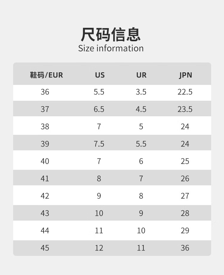 China (cm) 36 - 37 38 - 39 40 - 42 43 - 44 45 - 47