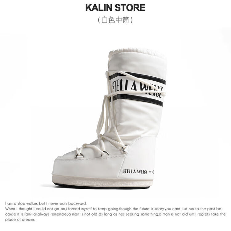 Wujiang Miaopin 8 cm Innenhöhe Schneestiefel für Damen 2025 Winter-Neumondstiefel Mittelkalb-Skischuhe, um warm zu bleiben, weiße Mittelkalb-35