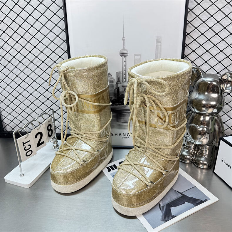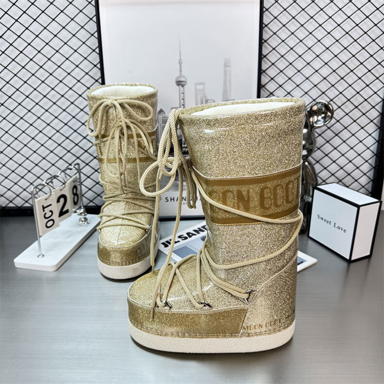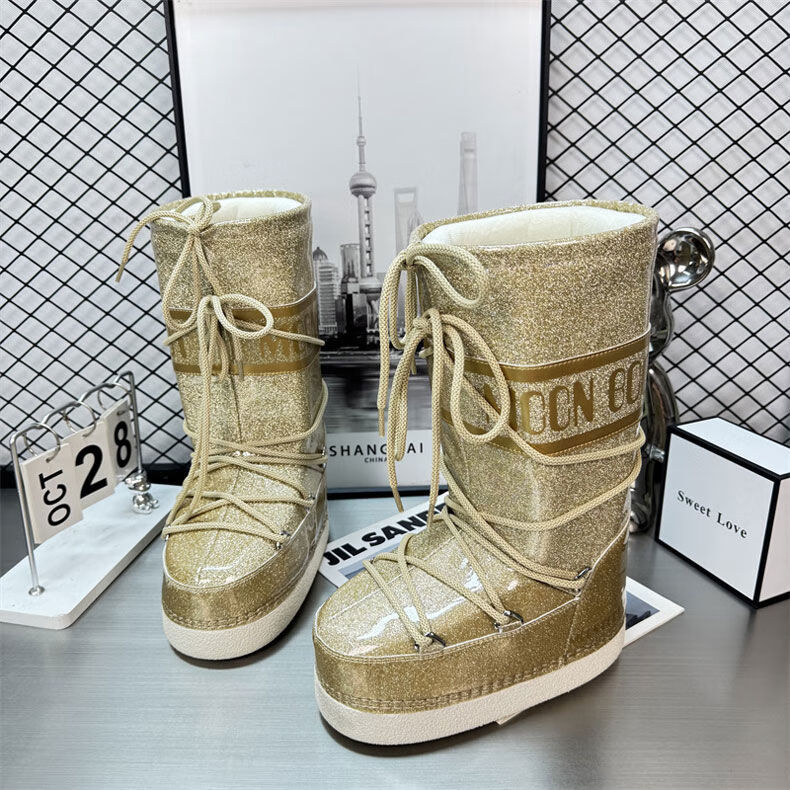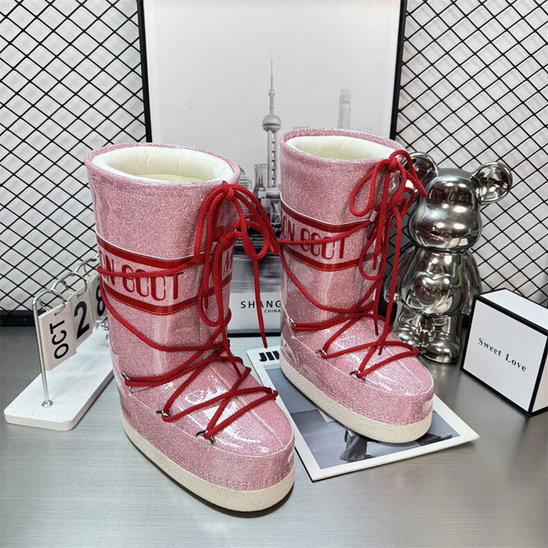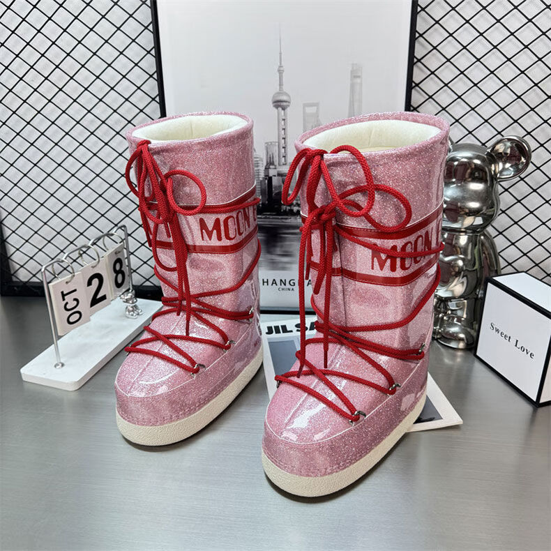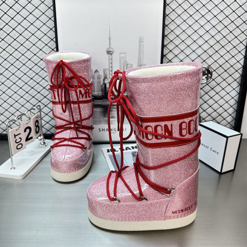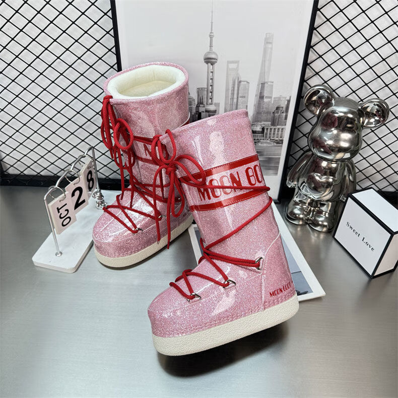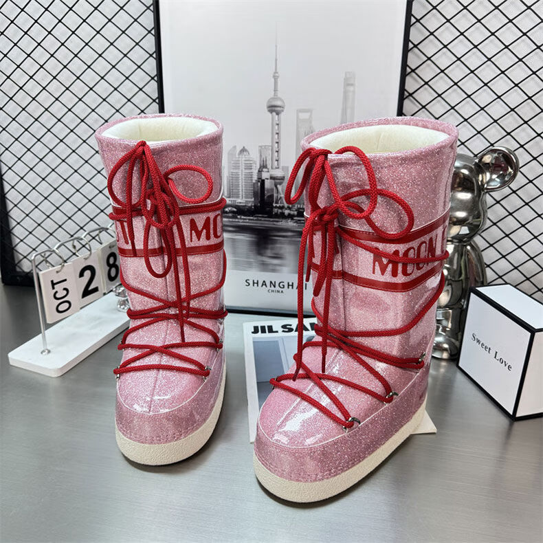 巨好看粉色雪地靴女冬季防水防滑高筒厚底增高东北滑雪鞋2025加绒 粉色 33 33