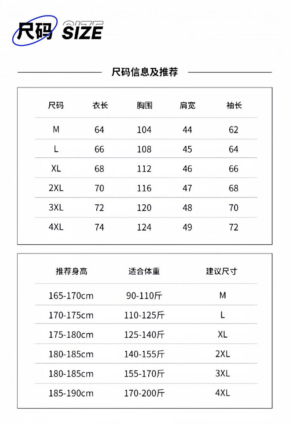 China (cm) 160-165/84-86 165-170 / 88-90 167-172 / 92-96 168-173 / 98-102 170-176 / 106-110