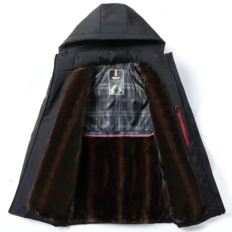 Brand clearance popular men's mink velvet jacket, five-proof fabric plus velvet to keep warm, super warm in winter, black 3XL 145-160Jin Jin equals 0.5 kg