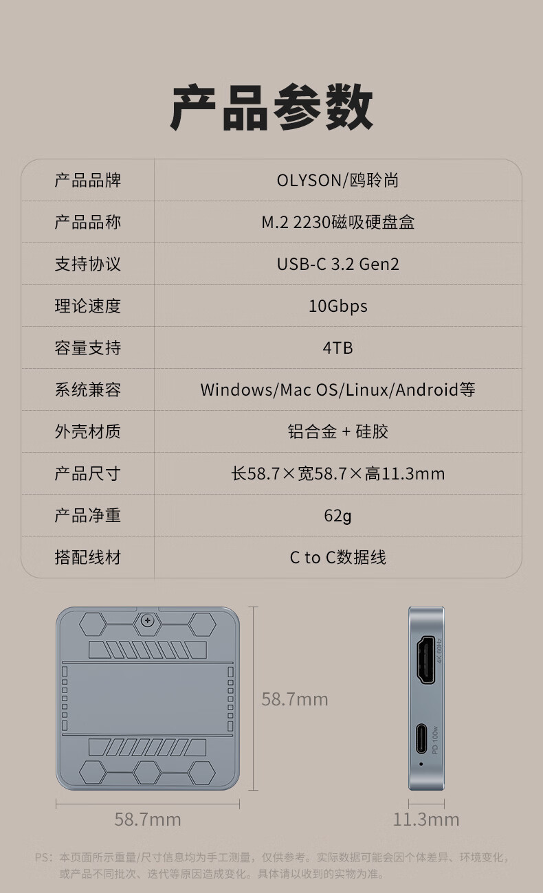 OLYSONM.2 magnetic hard drive expansion dock NVMe 2230 mobile solid state drive box 4K video direct recording suitable for Apple 17 direct connection external camera card reader HDIM high-definition screen projection multi-port expansion M.2 2230 flash transmission + real-time direct recording