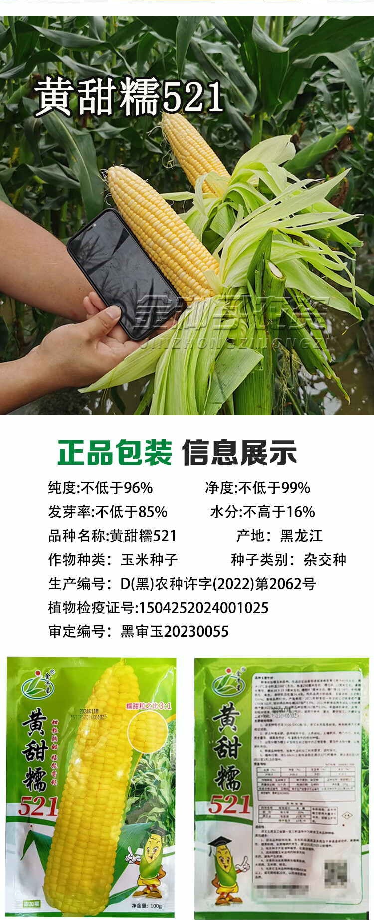 Taurus Star Yellow Sweet Nuo 521 Yellow Glutinous Corn Seeds Northeast Sticky Corn Seeds Sweet Plus Glutinous Yellow Sticky Corn Not Bald Tip Huang Tian Nuo 521 Corn 100g