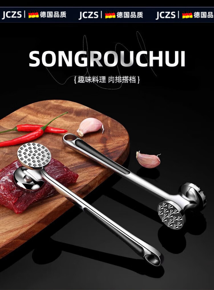 JCZS German quality solid steak hammer steak hammer zinc alloy tendon breaker kitchen tenderizer meat tool double-sided meat loosening hammer