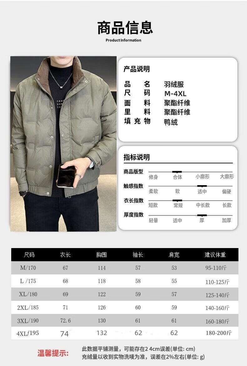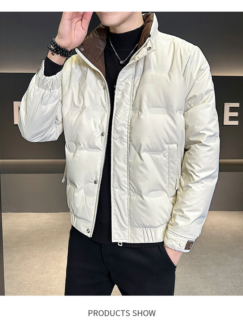 JEEP SPIRIT Down Jacket Men's Winter 2025 New Thickened Warm Jacket Stand Collar Fashion Men's Jacket Cold Protection Beige M Recommendation 90-115Jin Jin equals 0.5 kg