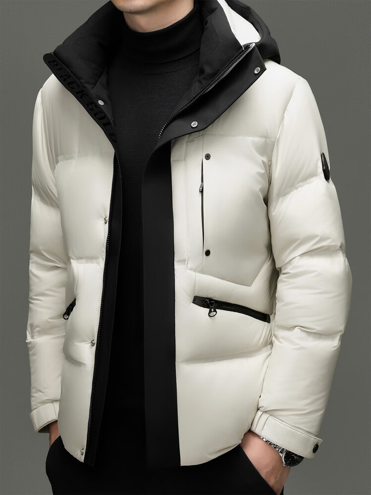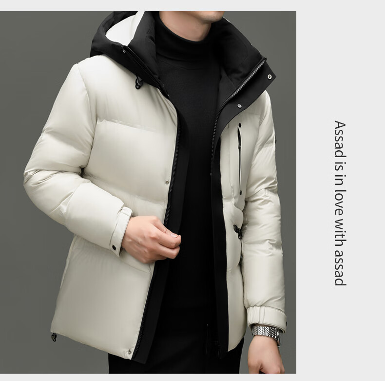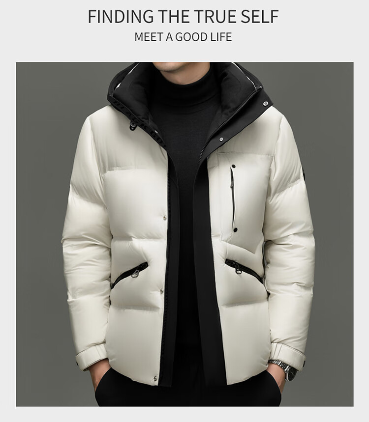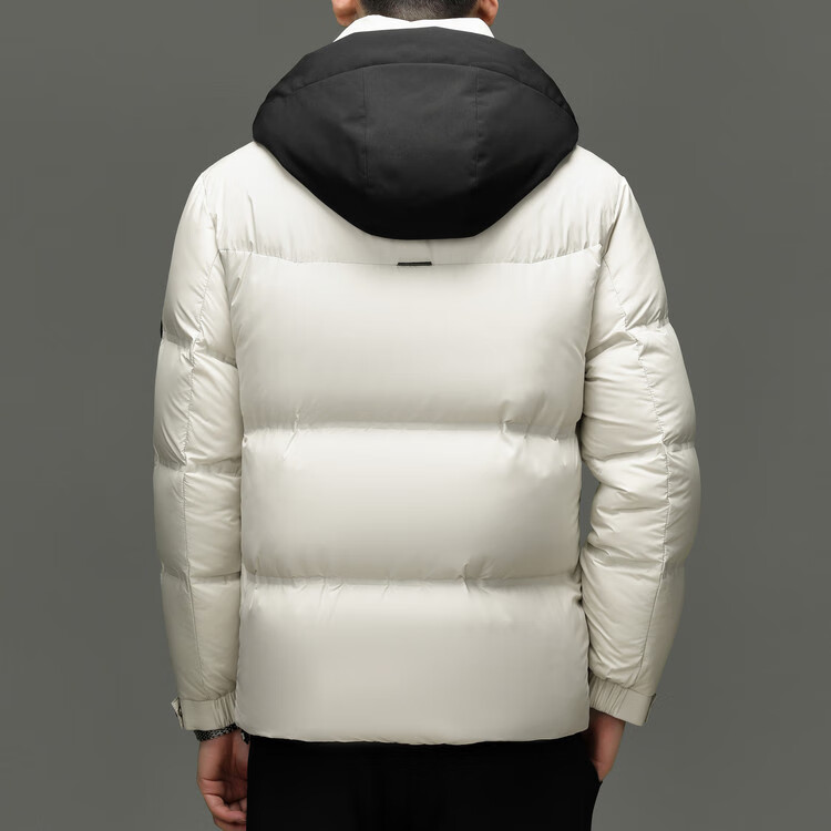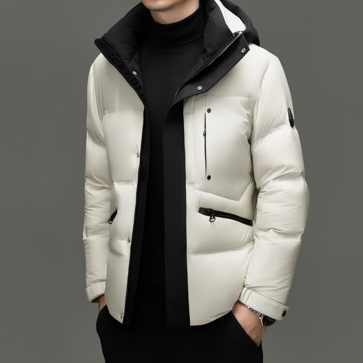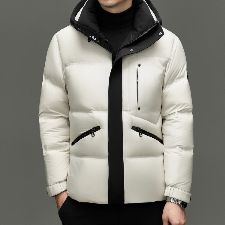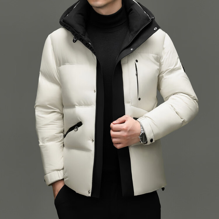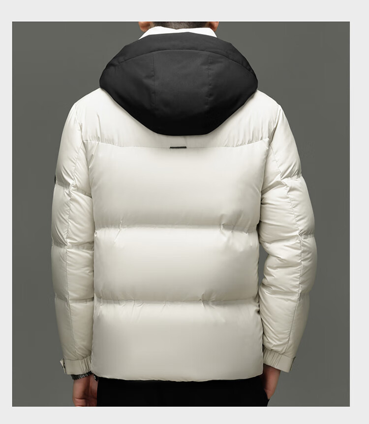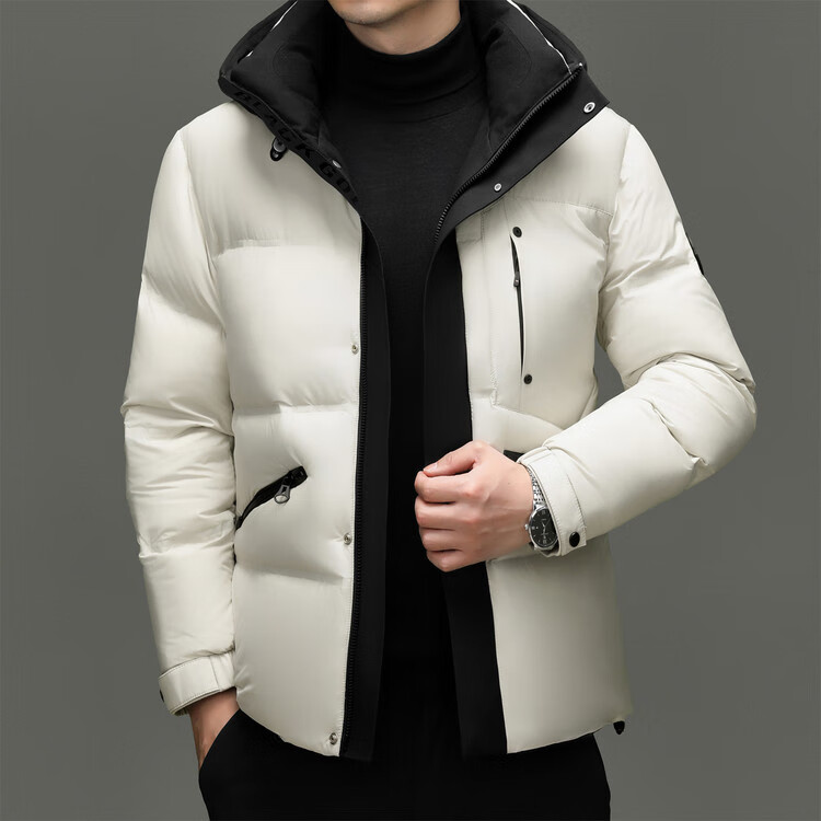 Hengyuanxiang winter high-end down jacket men's casual hooded thickened warm short bread coat 2025 new men's jacket off-white 3XL