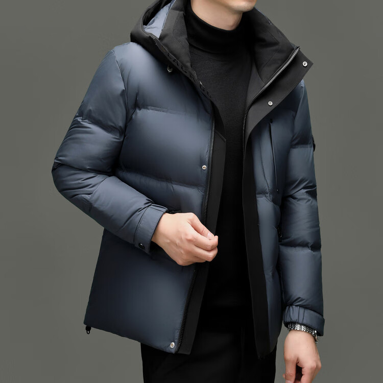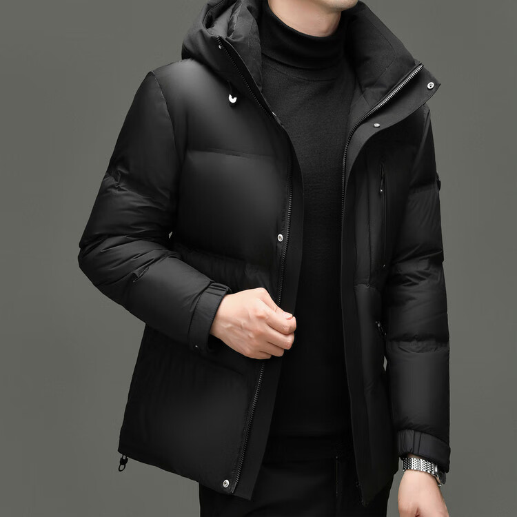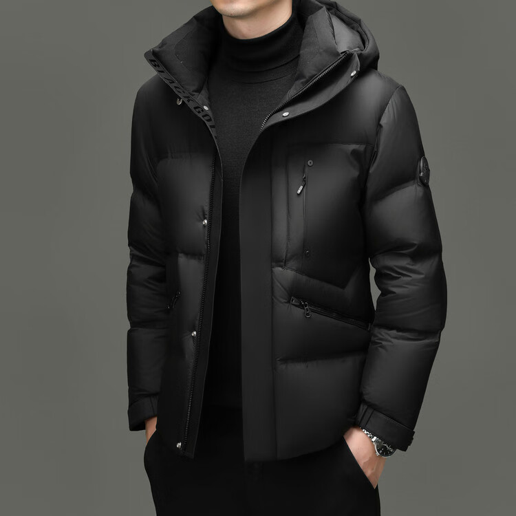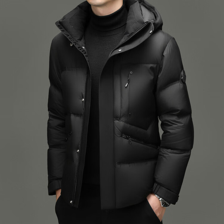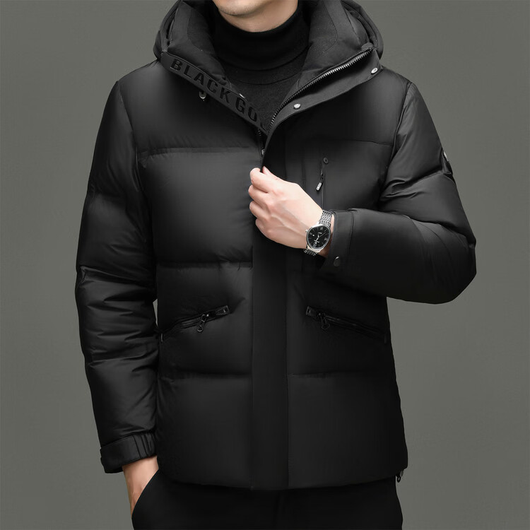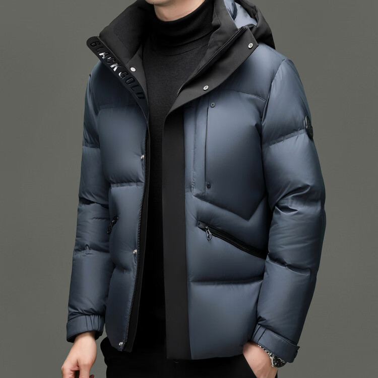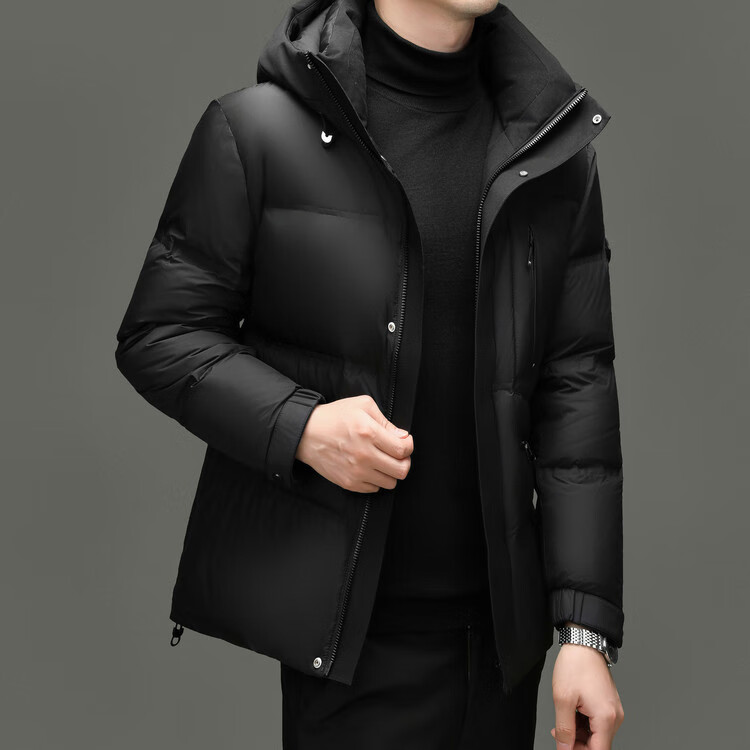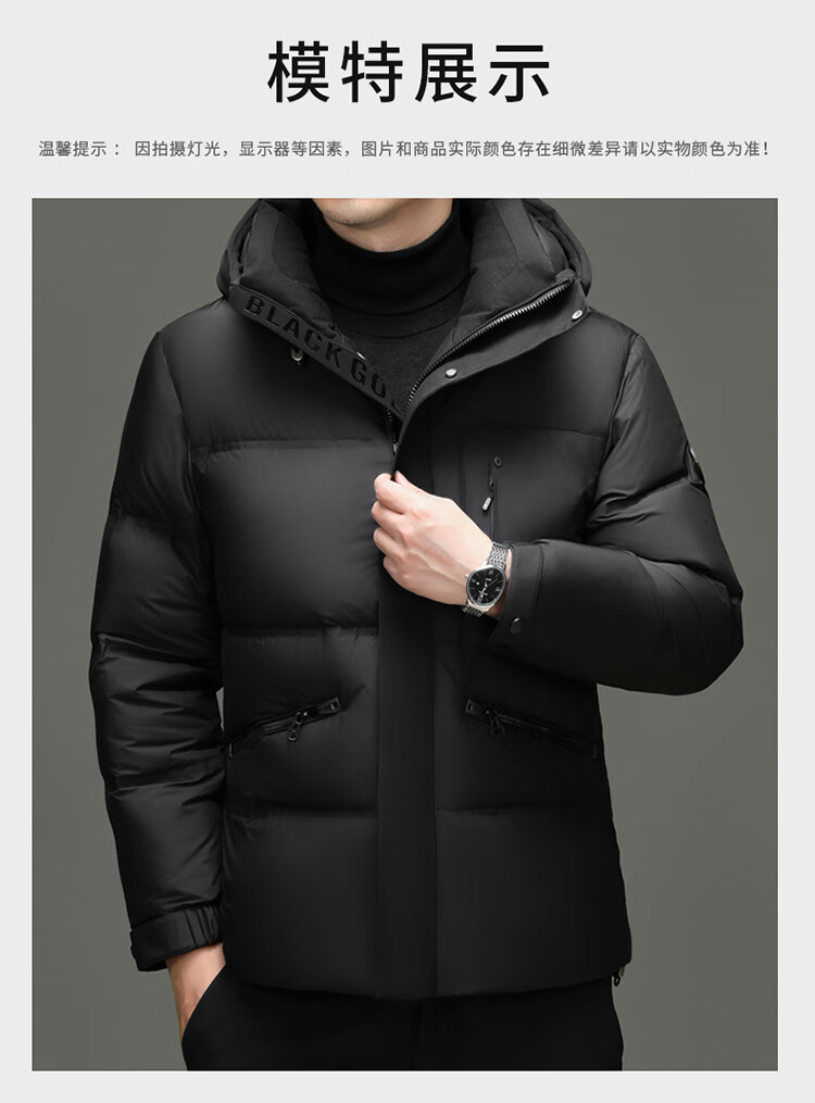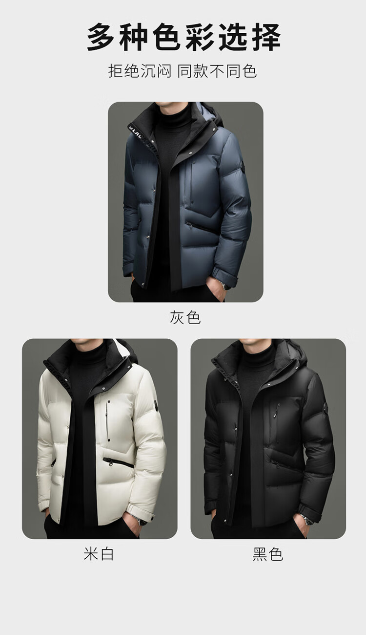 Hengyuanxiang winter high-end down jacket men's casual hooded thickened warm short bread coat 2025 new men's jacket off-white 3XL