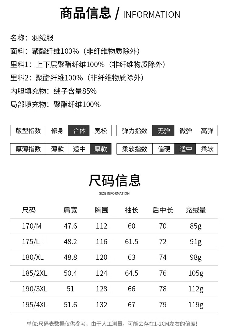 China (cm) 165 / 88-90 170 / 96-98 175 / 108-110 180 / 118-122 185 / 126-130