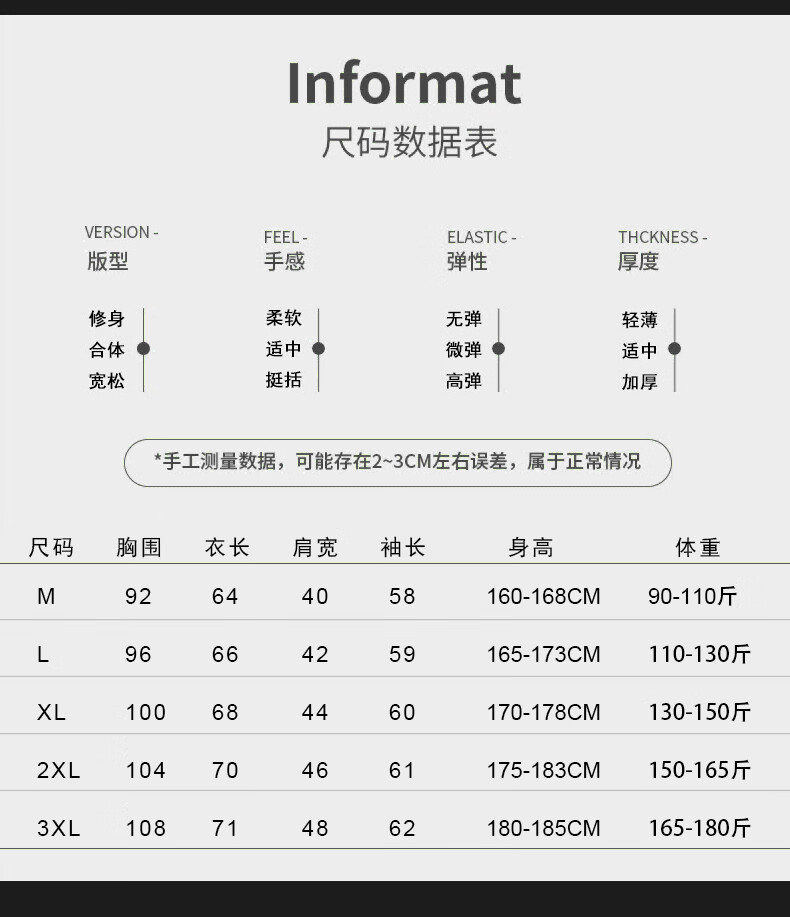 China (cm) 165 / 88-90 170 / 96-98 175 / 108-110 180 / 118-122 185 / 126-130