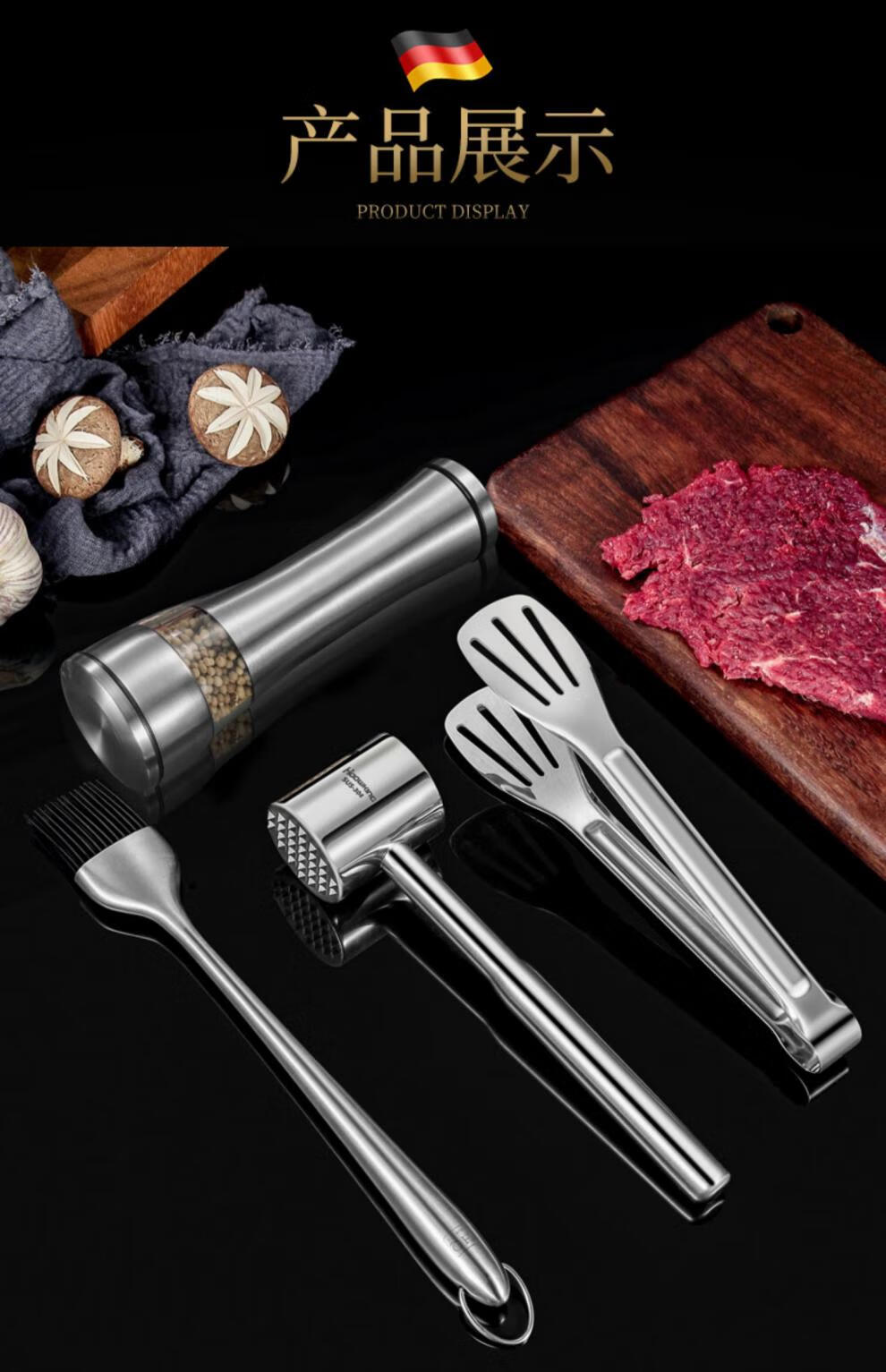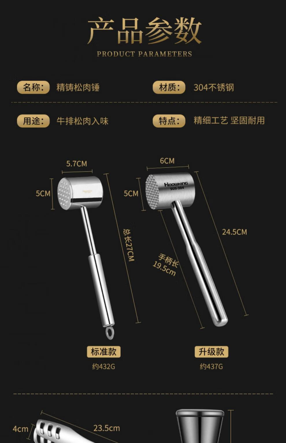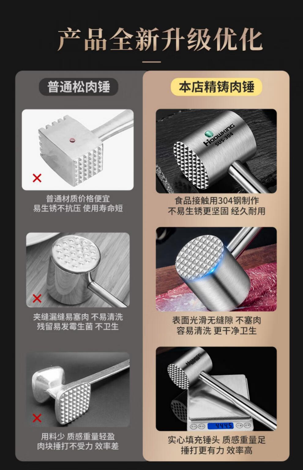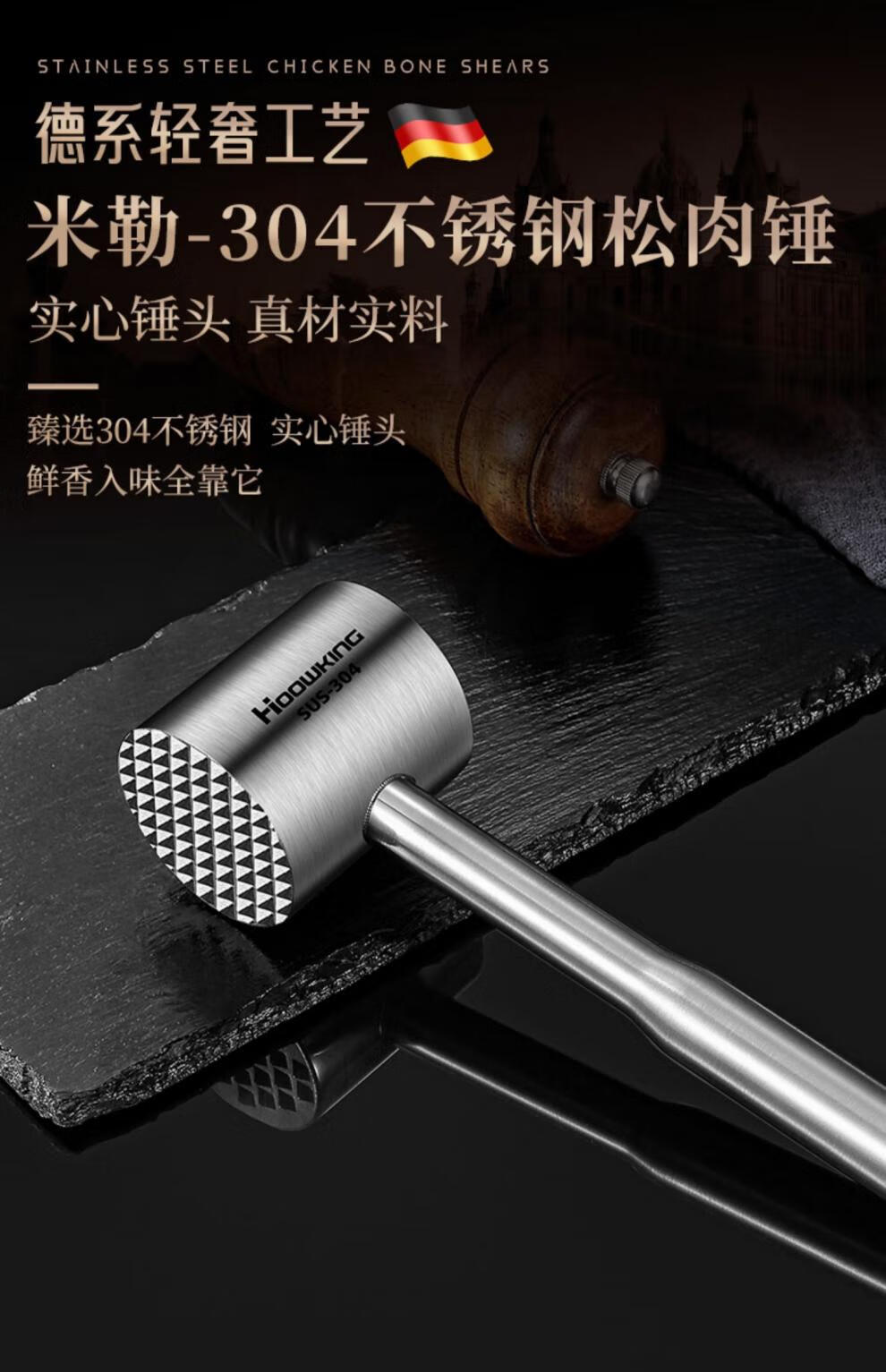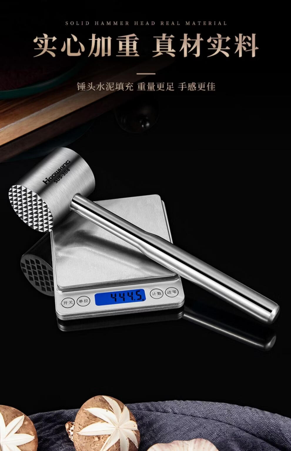 ZFEN Martillo especial para carne de acero inoxidable 304 de calidad importada alemana, batidor para carne suelta, martillo para batir carne tierna, martillo para carne fundido de precisión mejorado + cepillo de aceite