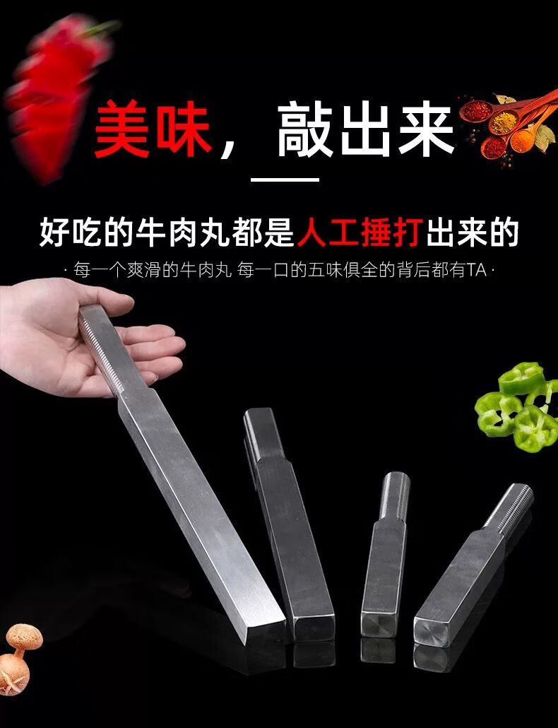 满弓高端品质肉锤潮汕手打牛肉丸锤304不锈钢牛筋丸棒敲肉丸铁锤丸锤 304不锈钢(一对)