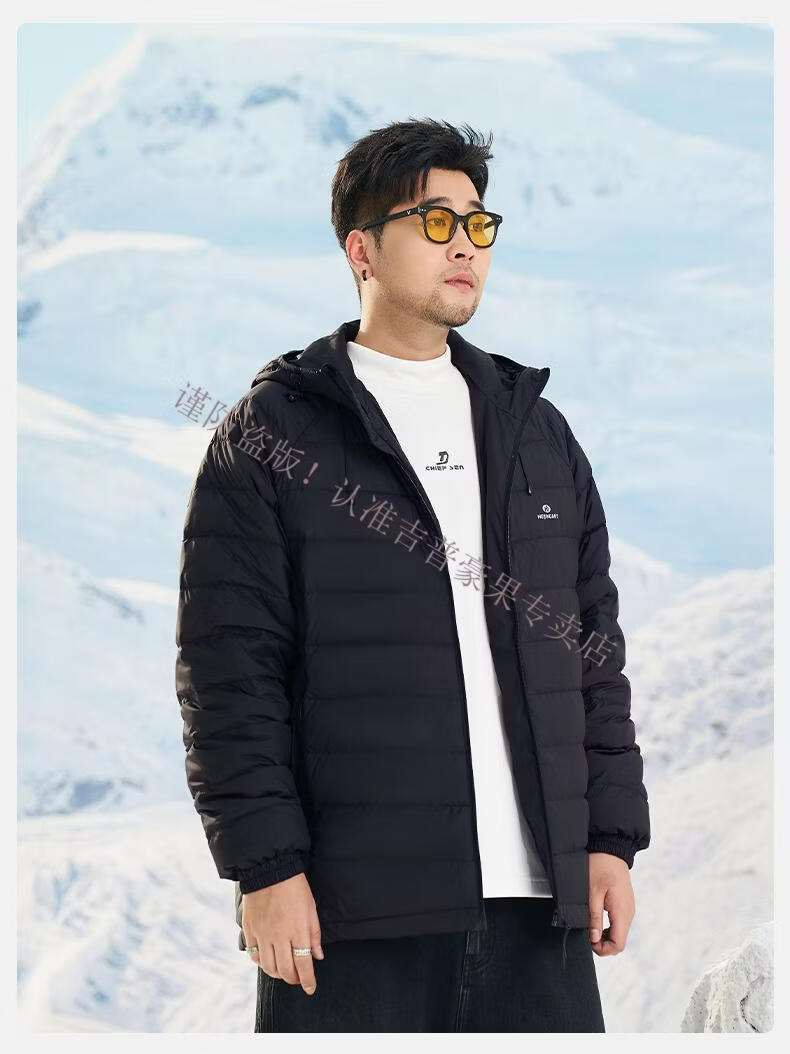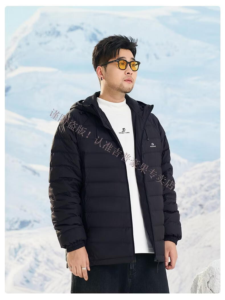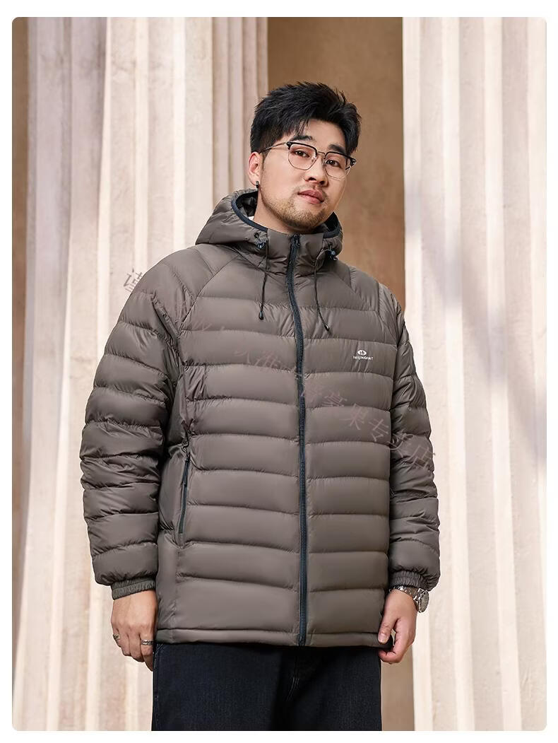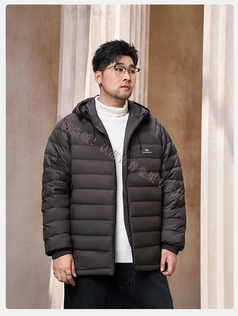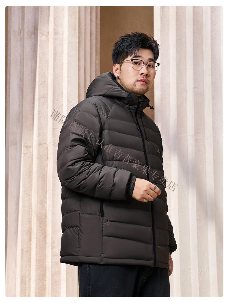 JEEP SPIRIT Simple and Fashionable Men's Lightweight Rib Down Jacket Men's Winter Couple Warm Loose Hooded Jacket Dark Brown Hooded 2XL 180-200Jin Jin equals 0.5 kg