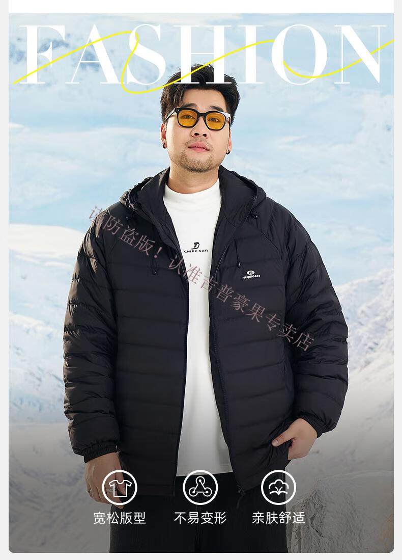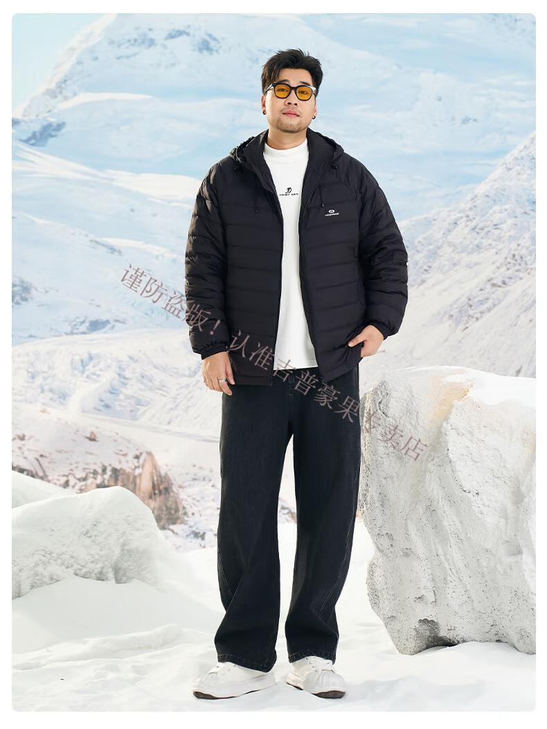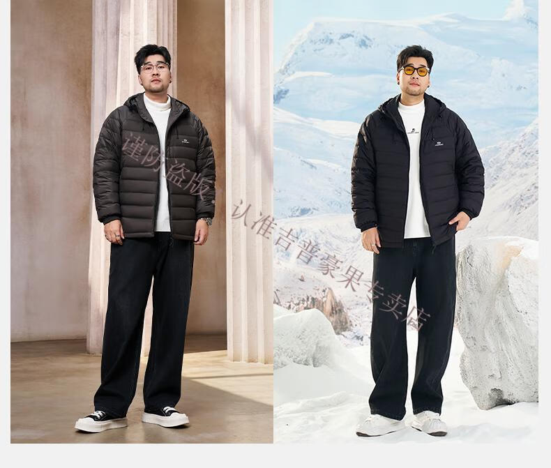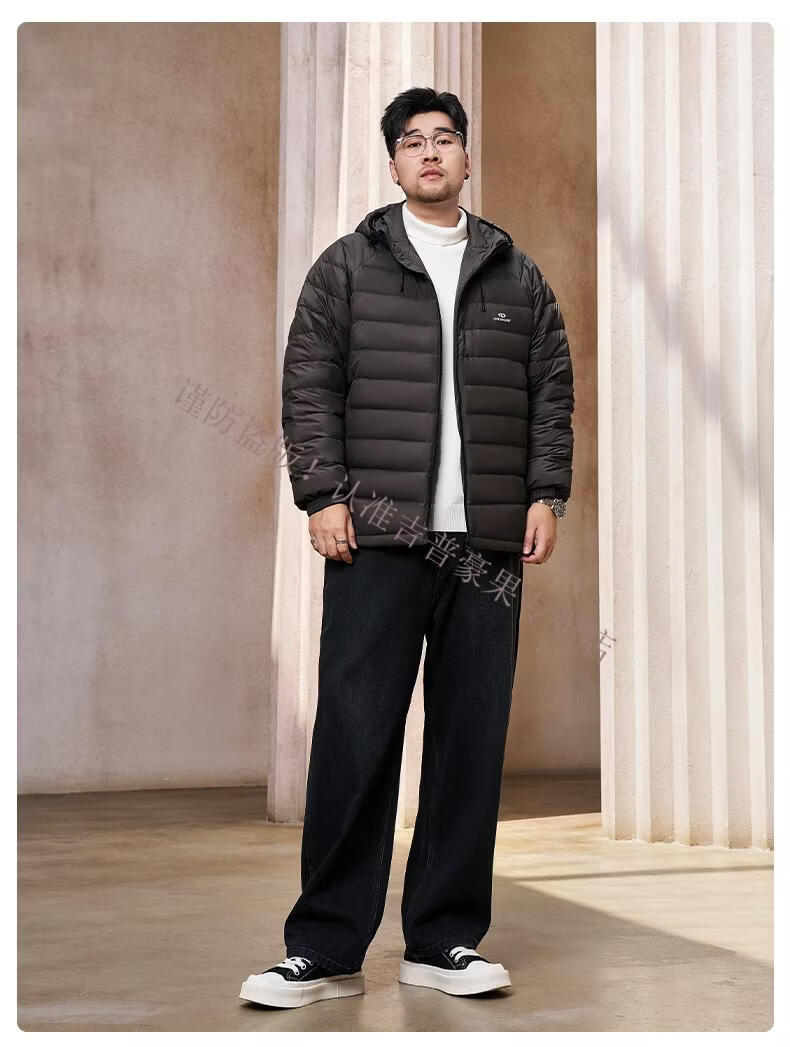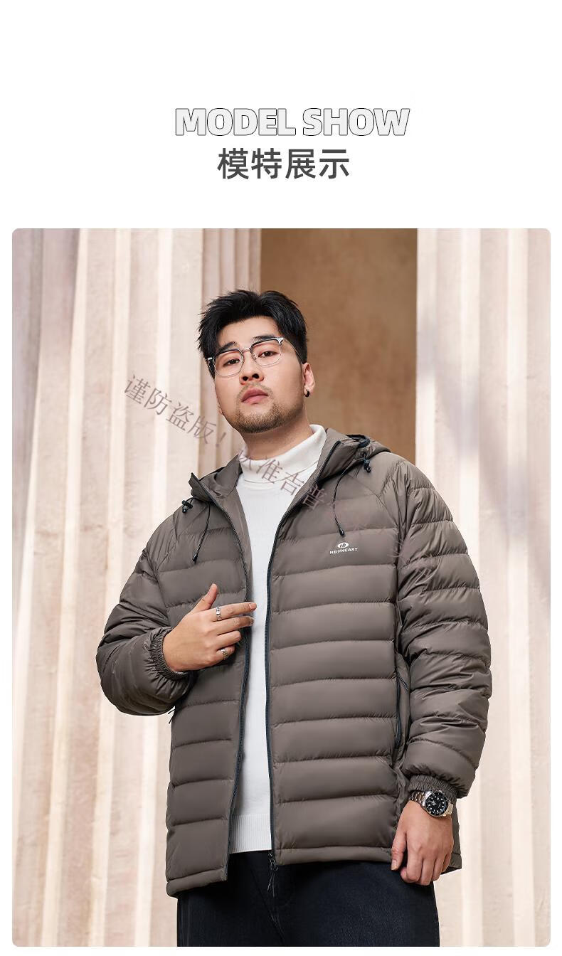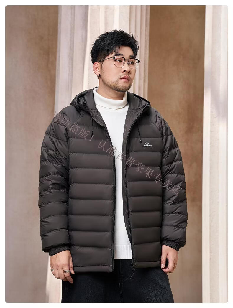 JEEP SPIRIT Simple and Fashionable Men's Lightweight Rib Down Jacket Men's Winter Couple Warm Loose Hooded Jacket Dark Brown Hooded 2XL 180-200Jin Jin equals 0.5 kg