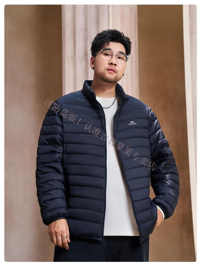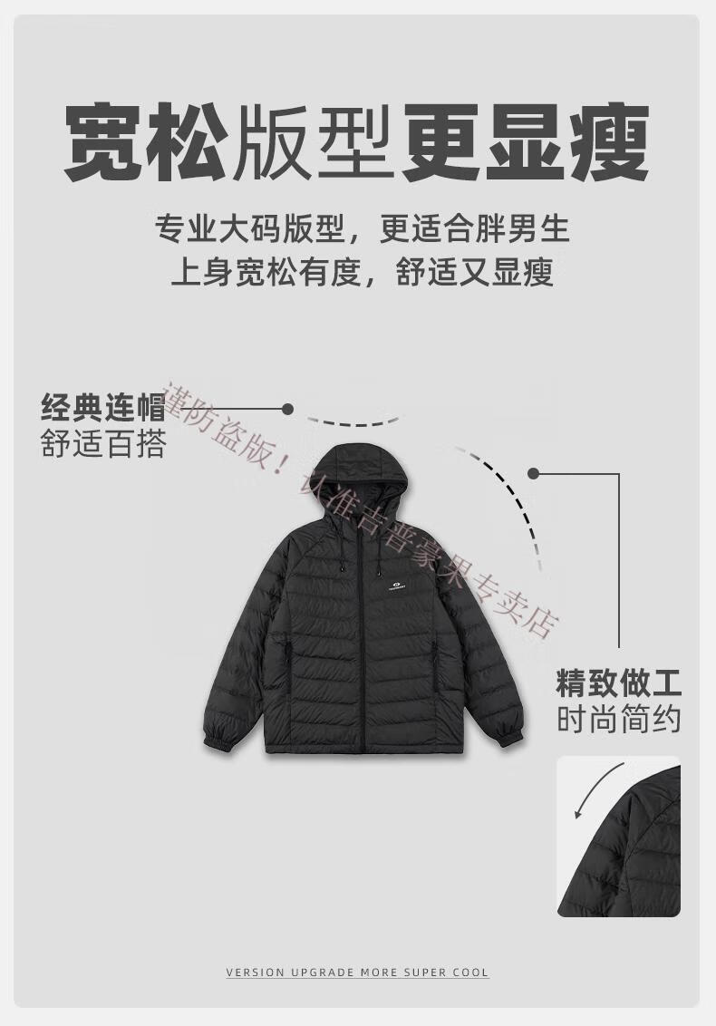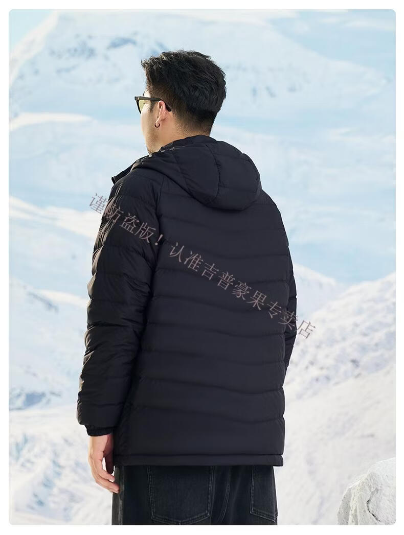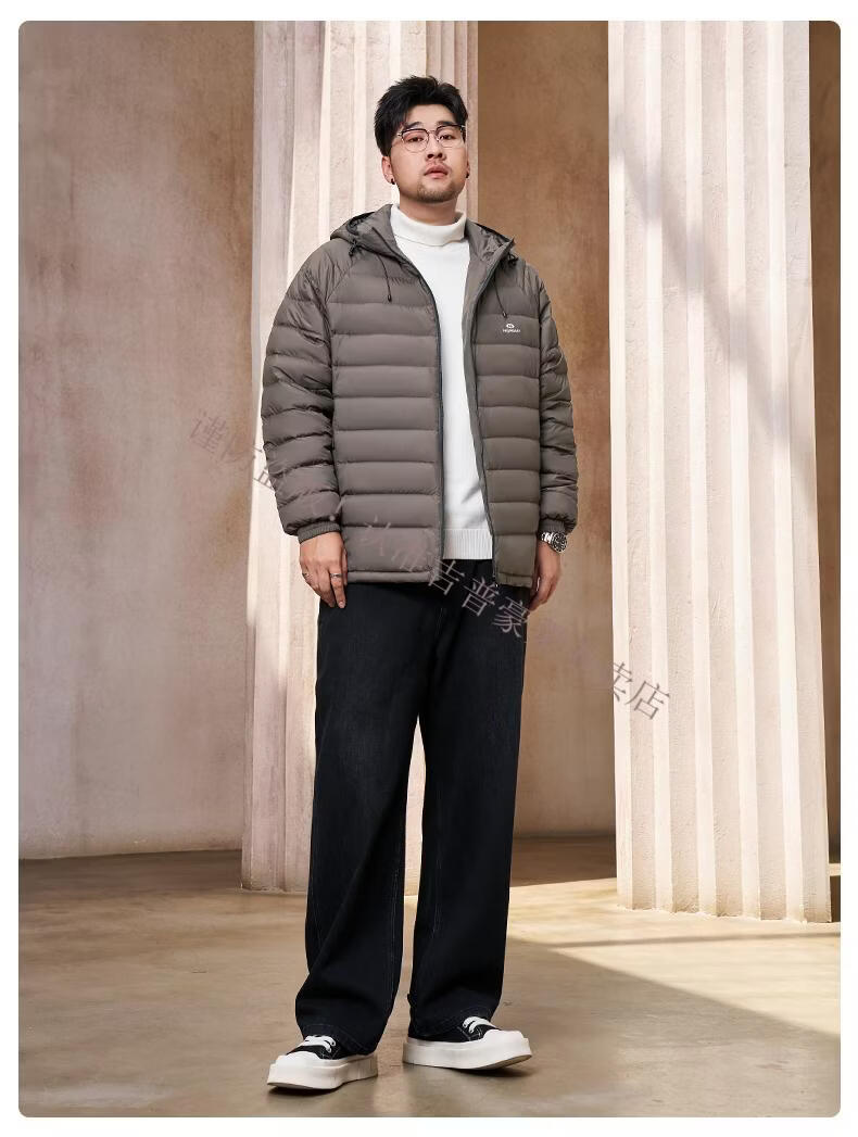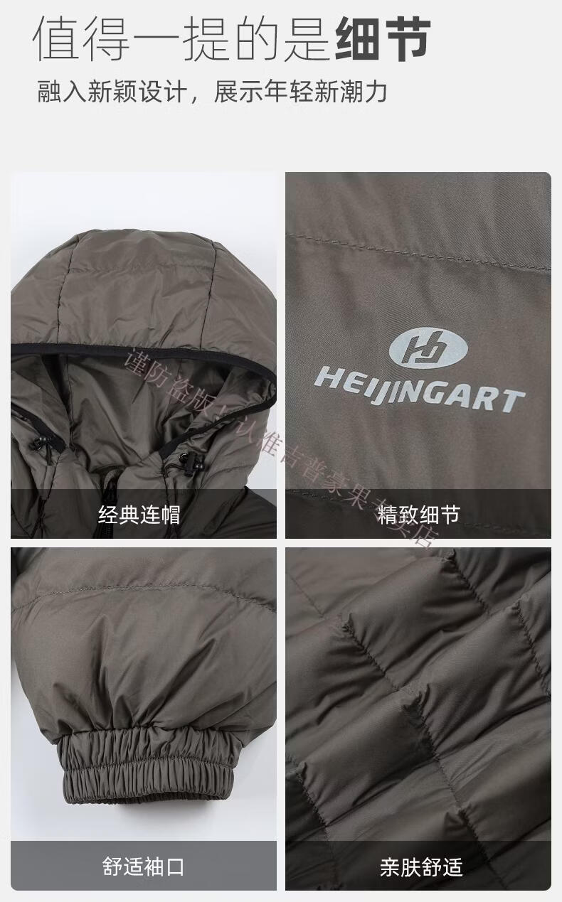JEEP SPIRIT Simple and Fashionable Men's Lightweight Rib Down Jacket Men's Winter Couple Warm Loose Hooded Jacket Dark Brown Hooded 2XL 180-200Jin Jin equals 0.5 kg