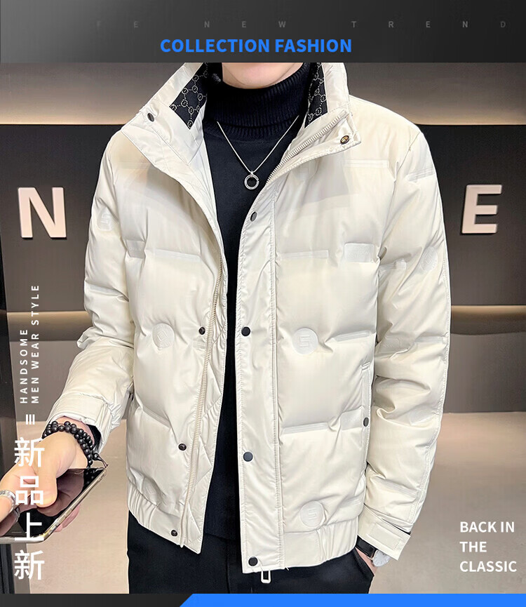 Navigare Italian small sailing winter down jacket men's short thickened cold-proof clothing new fashion brand casual stand-up collar warm khaki L