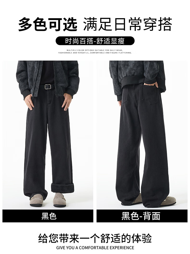 ШОКОЛАДНЫЕ черные бархатные джинсы для мужчин 2025, осень и зима, утолщенные теплые прямые брюки в стиле ретро, черный бархат, рекомендуется размер 2XL 150Jin Jin = 0,5 кг -170Jin Jin = 0,5 кг