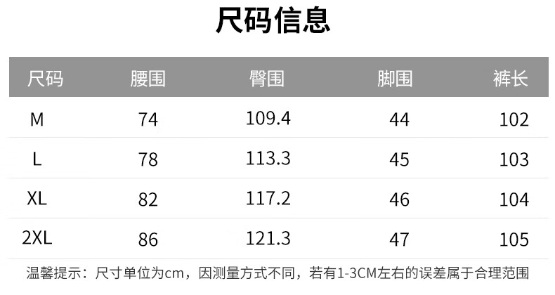 Outseam (cm) 99 cm 101.5 cm 104 cm 106.5 cm 109 cm