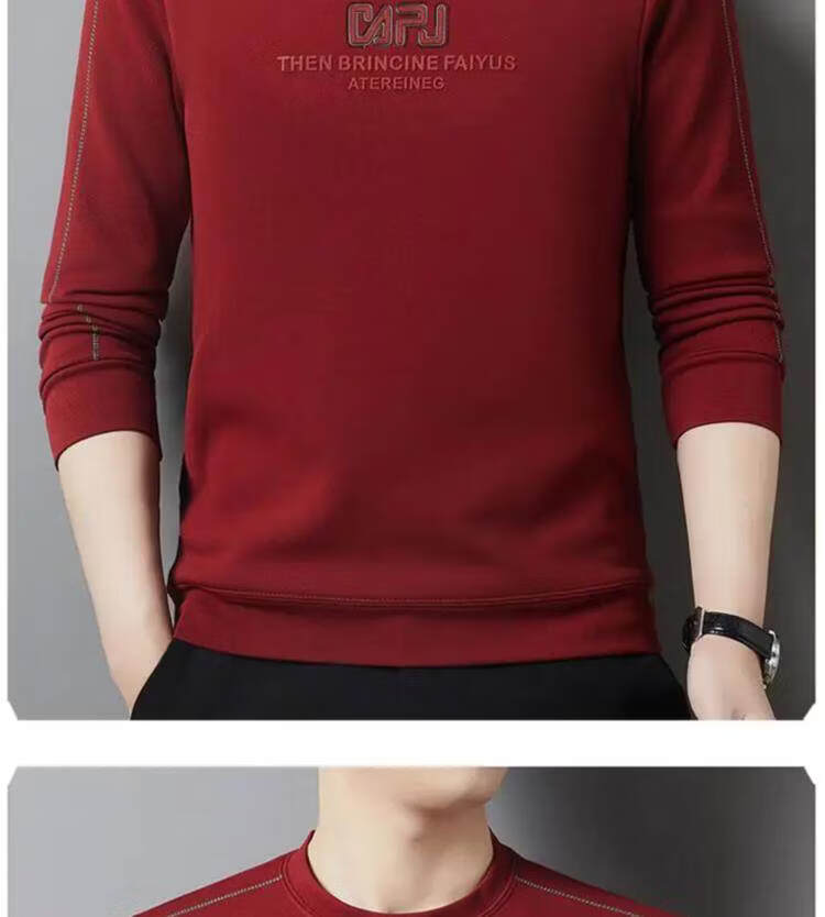 Hengyuanxiang мужская красная толстовка года животного 2026 бархатная утолщенная мужская свободная однотонная рубашка с длинными рукавами красного цвета M рекомендуется 100-120Jin Jin равна 0,5 кг