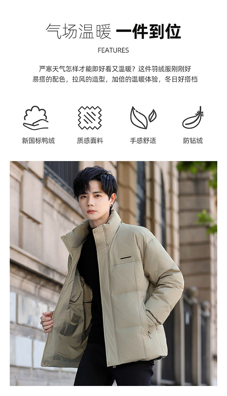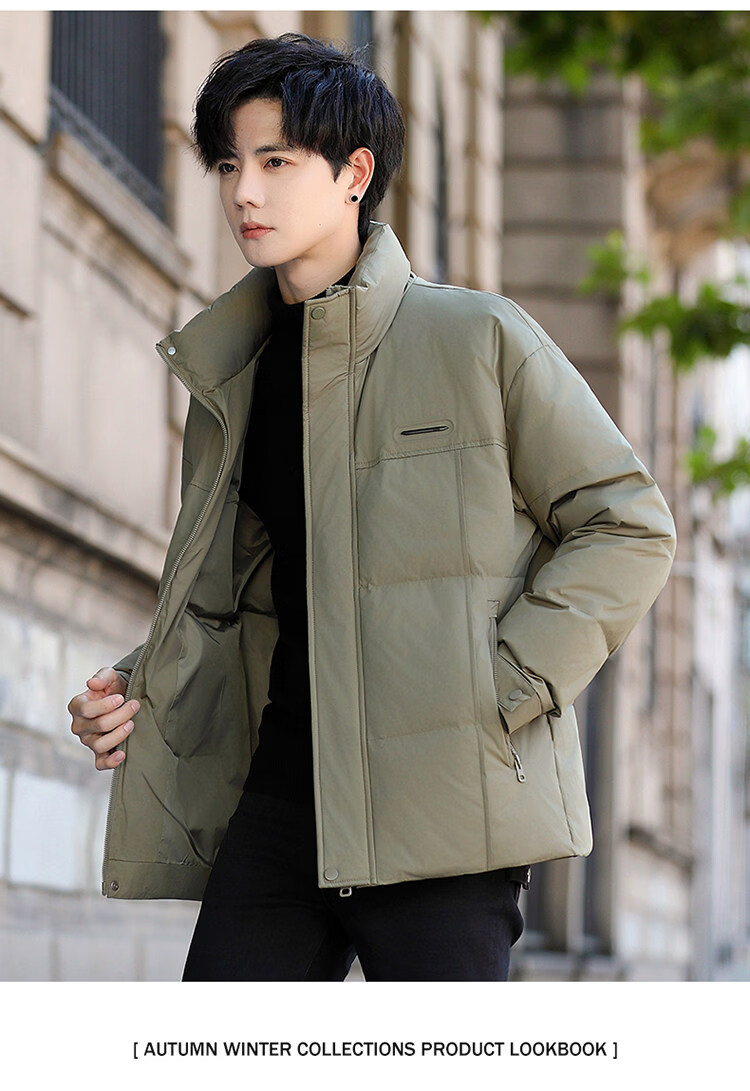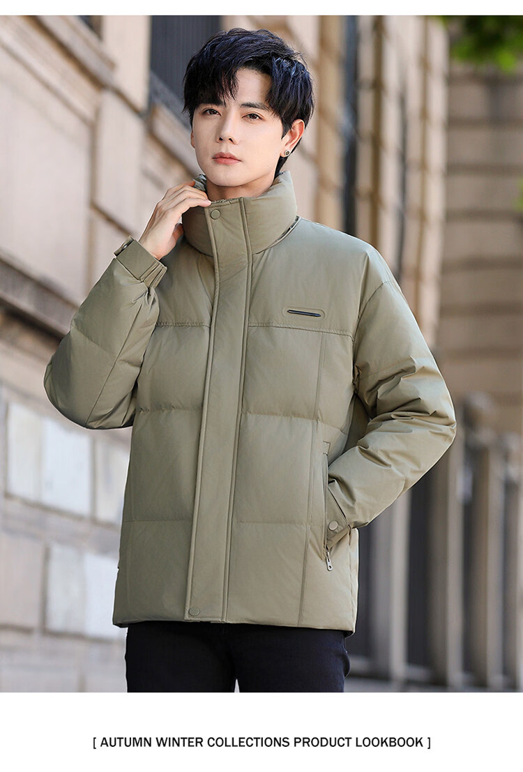 Мужская пуховая куртка Woodpecker (TUCANO), новинка 2025 года, зимняя утолщенная теплая белая утиная пуховая куртка в корейском стиле, повседневная куртка с воротником-стойкой, армейский зеленый M 100-125Jin Jin весит 0,5 кг