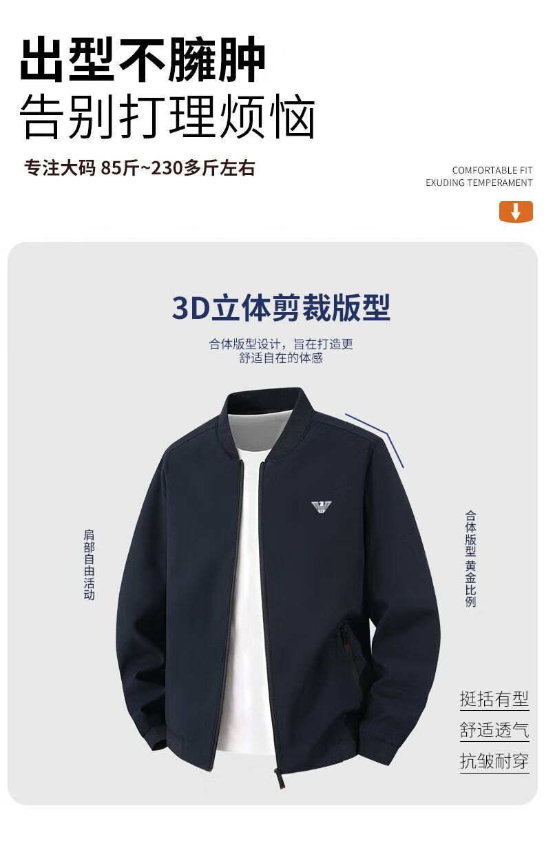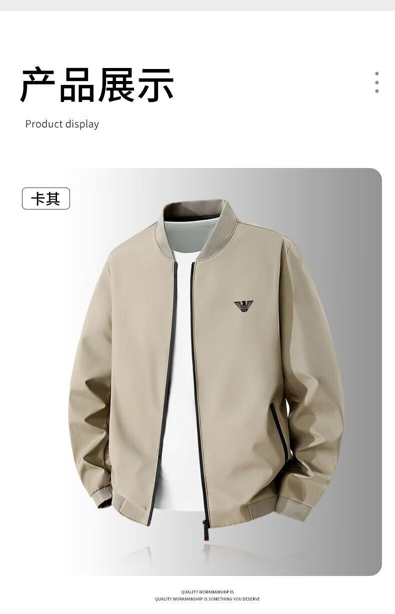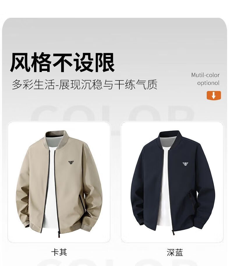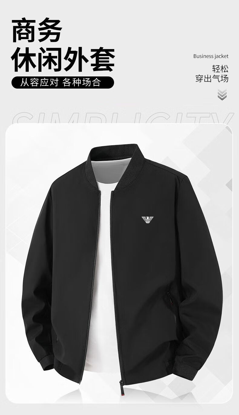 Куртка Armani (ARMANI) Мужская весенне-осенняя новая мужская повседневная ветрозащитная куртка с воротником-стойкой Мужская тонкая одежда для мальчиков Черный 615 7XL 210-230Jin Jin равен 0,5 кг