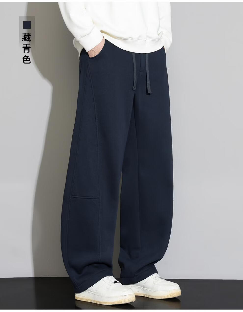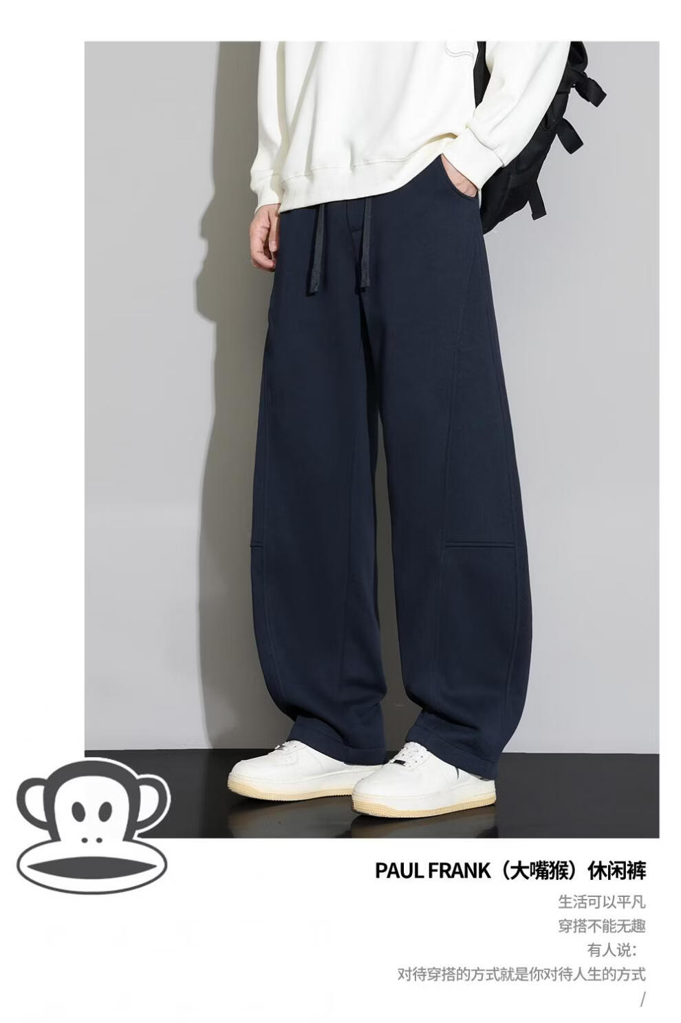 Big mouth monkey (paul frank) American retro casual machete pants for men 2025 winter new loose and comfortable trendy brand thickened long pants men's navy blue cold and warm plus velvet 3XL recommended 165-180Jin Jin equals 0.5 kg