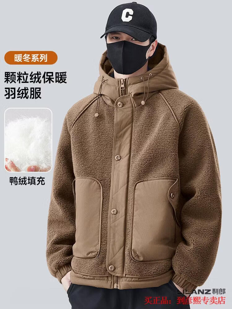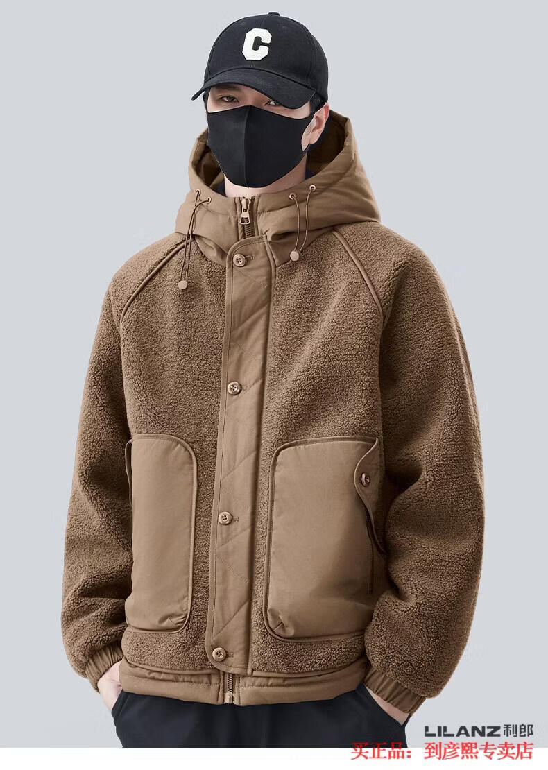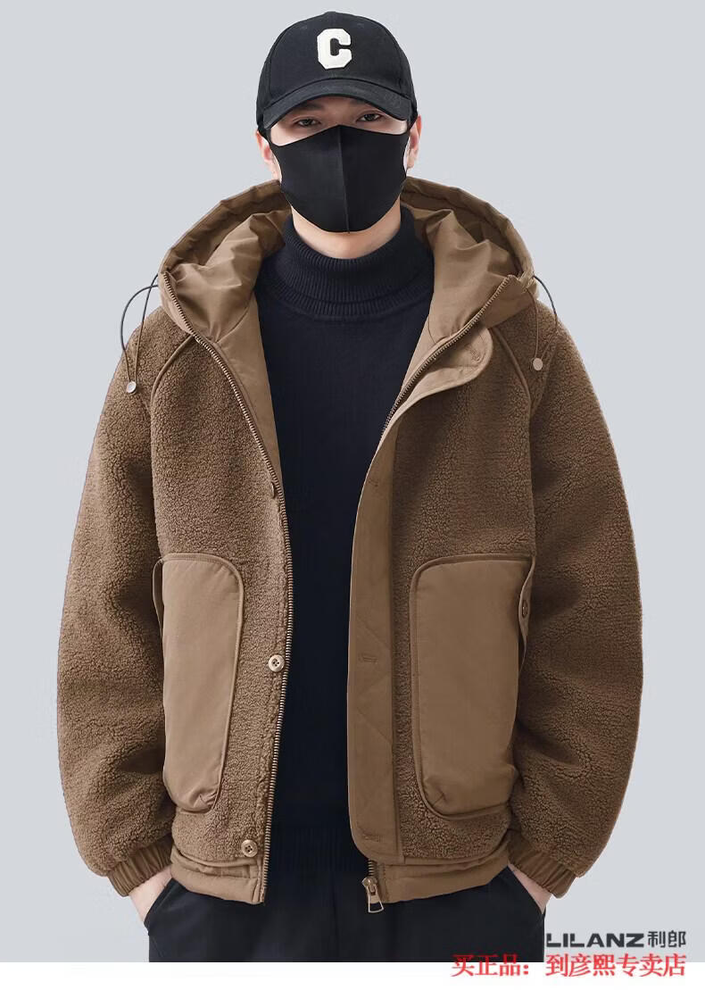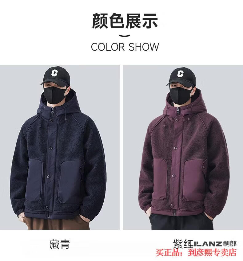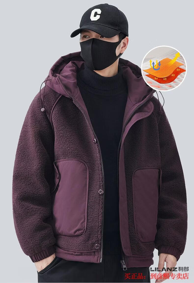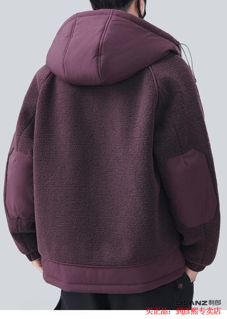 利郎(LILANZ)官方羊羔毛羽绒服男款冬季2025新款潮加厚保暖连帽摇粒绒外套男士 藏青-旗舰款 L 【130-150斤】