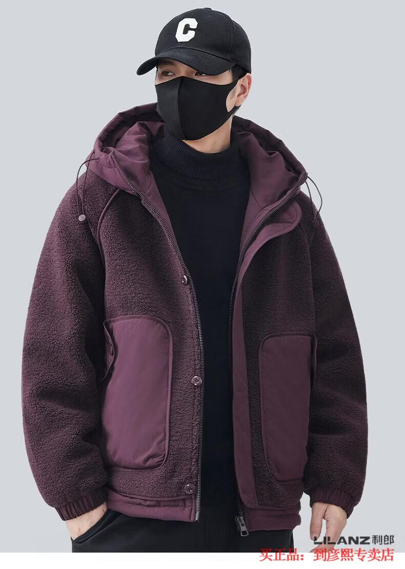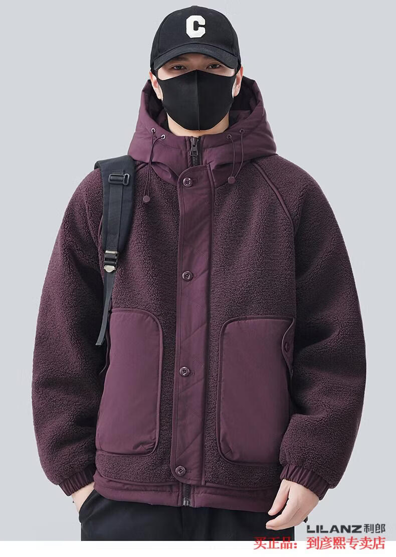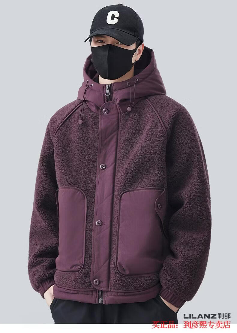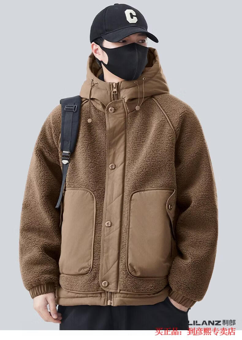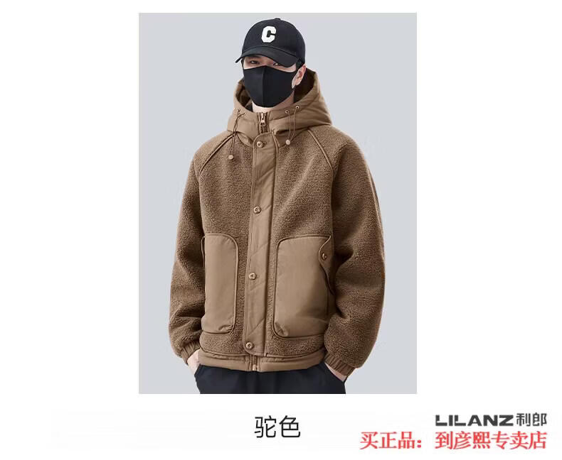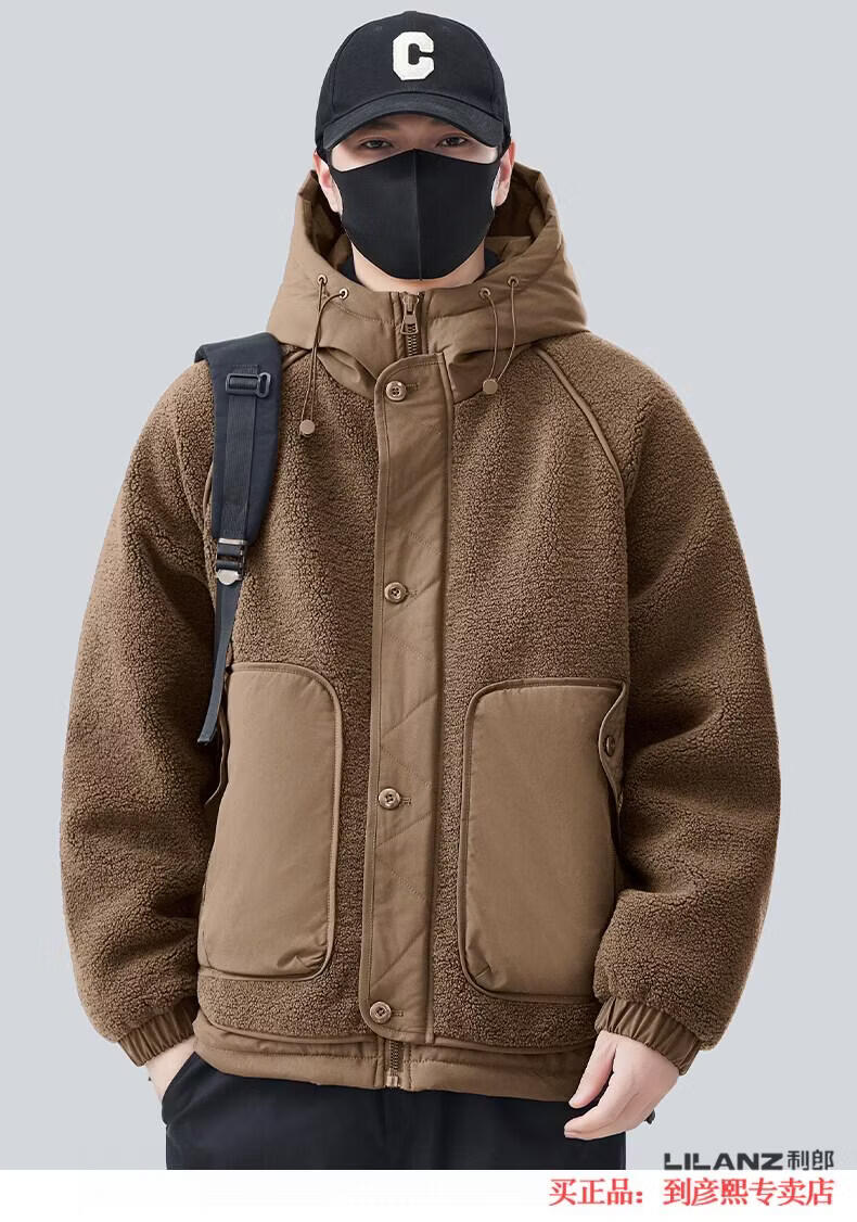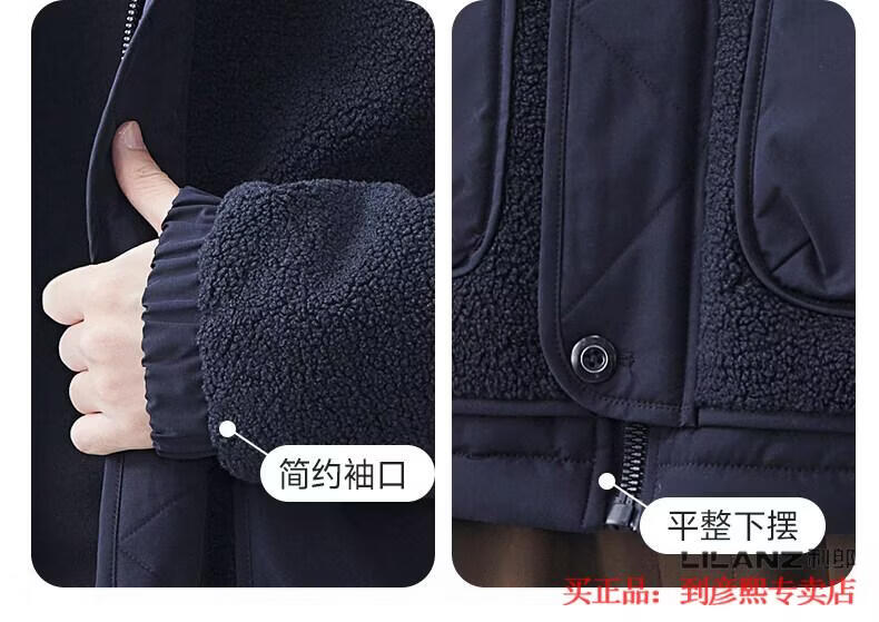 利郎(LILANZ)官方羊羔毛羽绒服男款冬季2025新款潮加厚保暖连帽摇粒绒外套男士 藏青-旗舰款 L 【130-150斤】