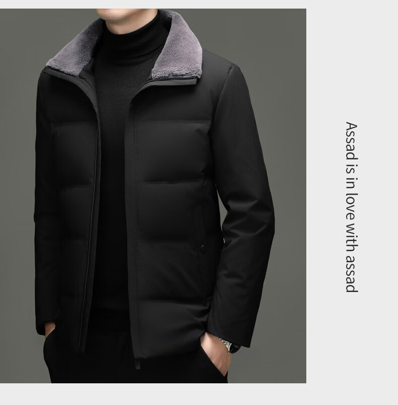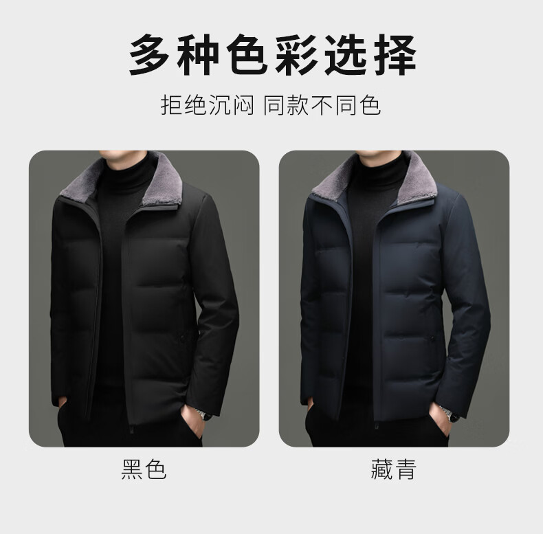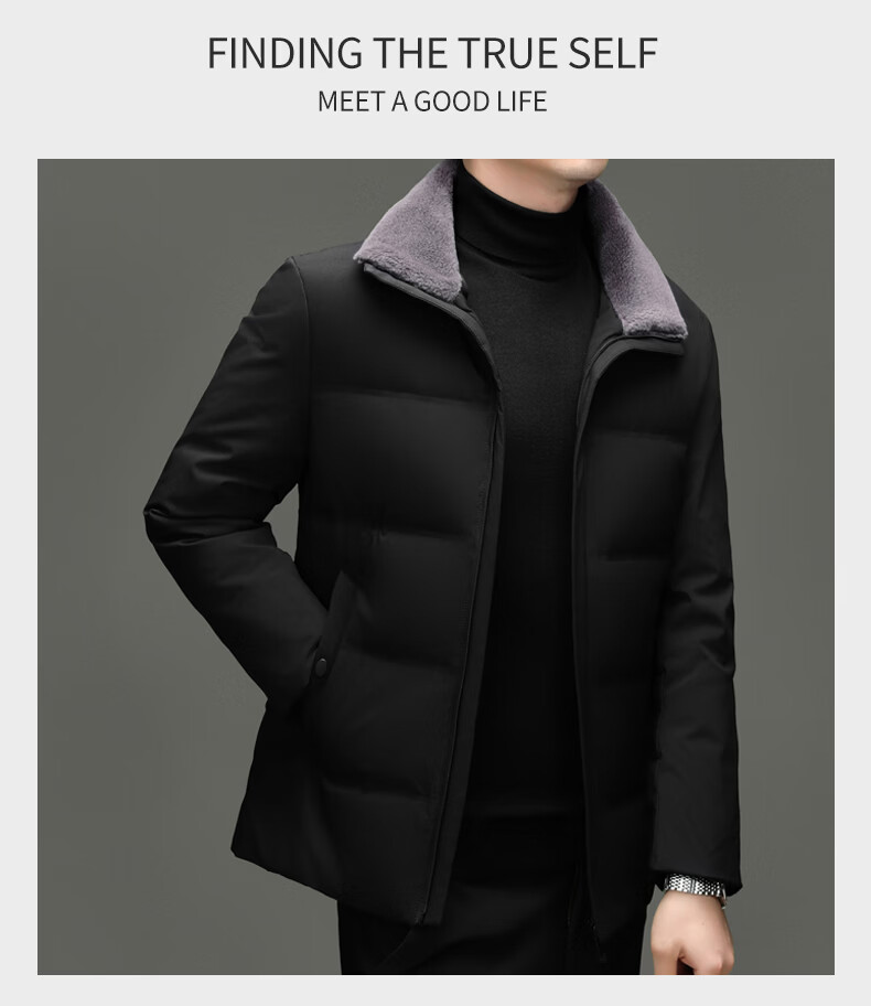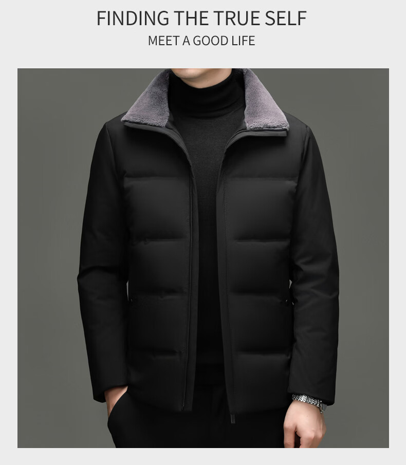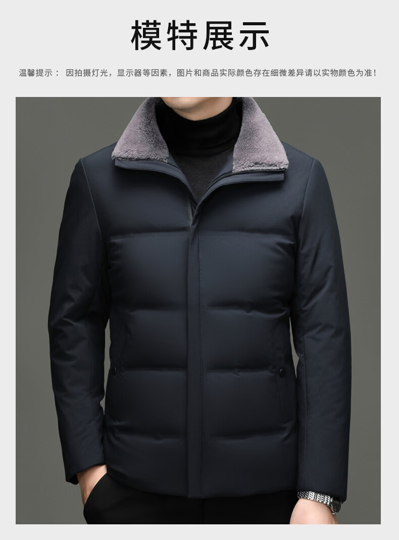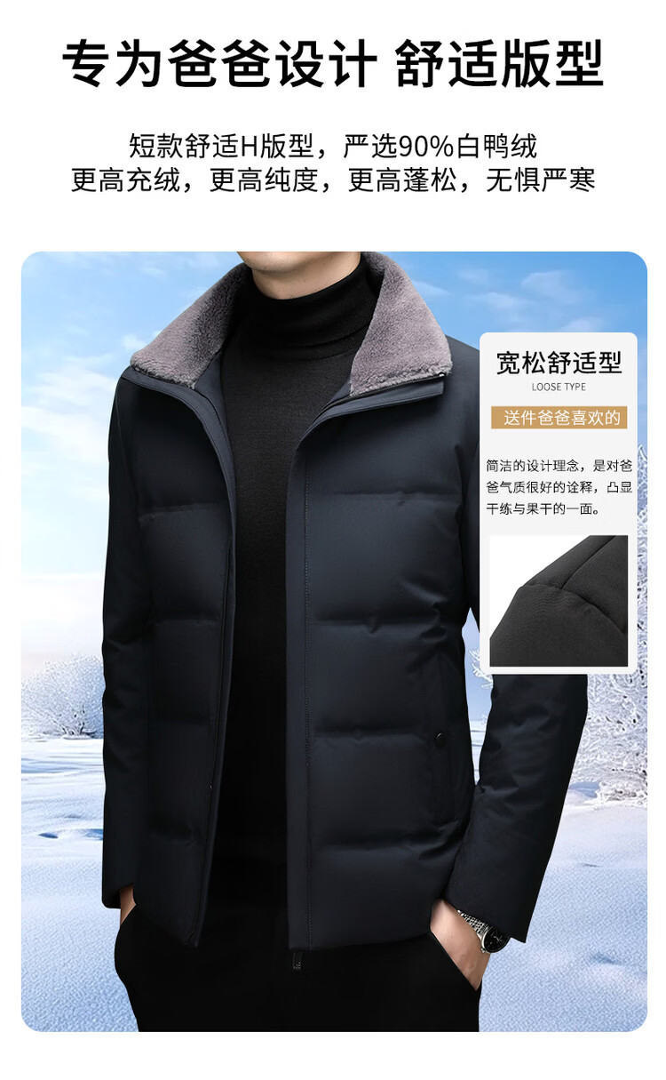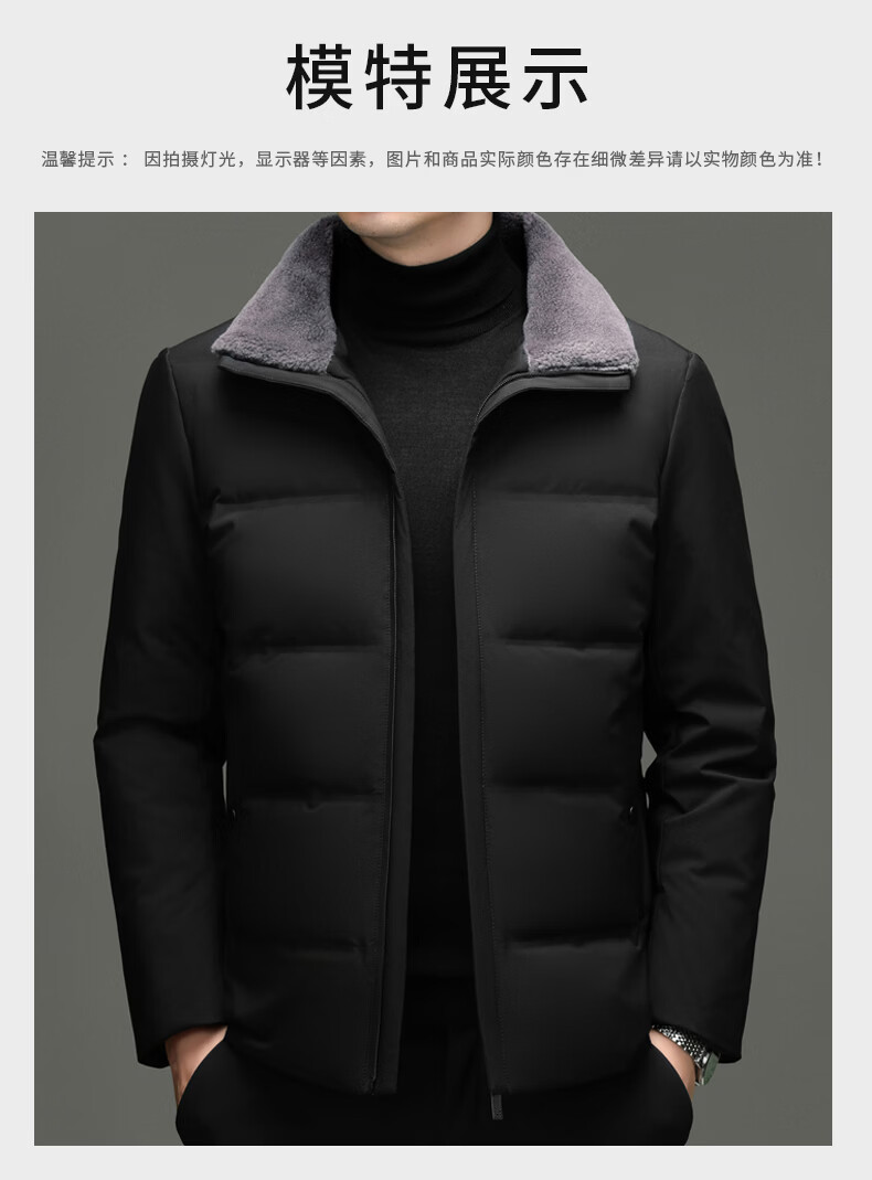恒源祥男士羽绒服短款2025新款冬季爸爸装带毛领加厚保暖防寒外套 黑色 M 170