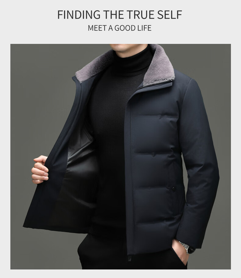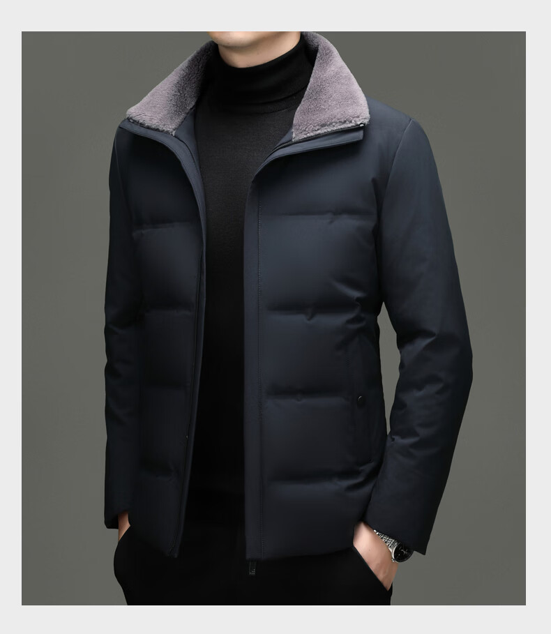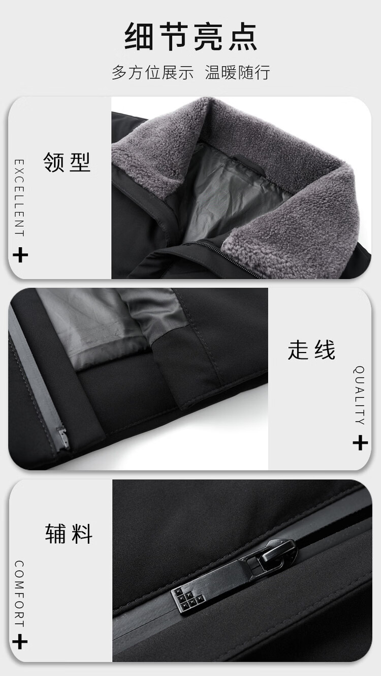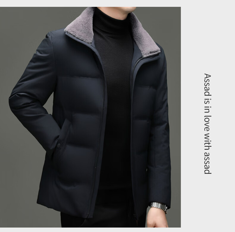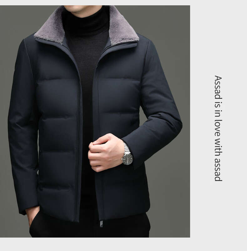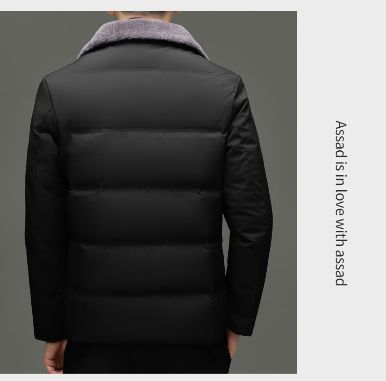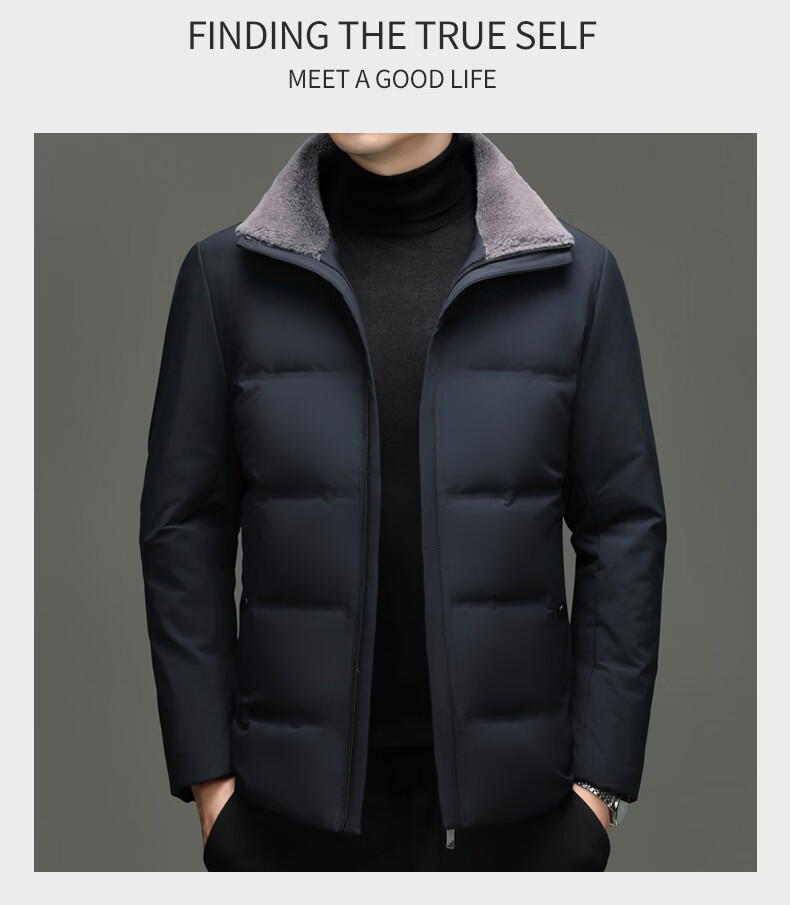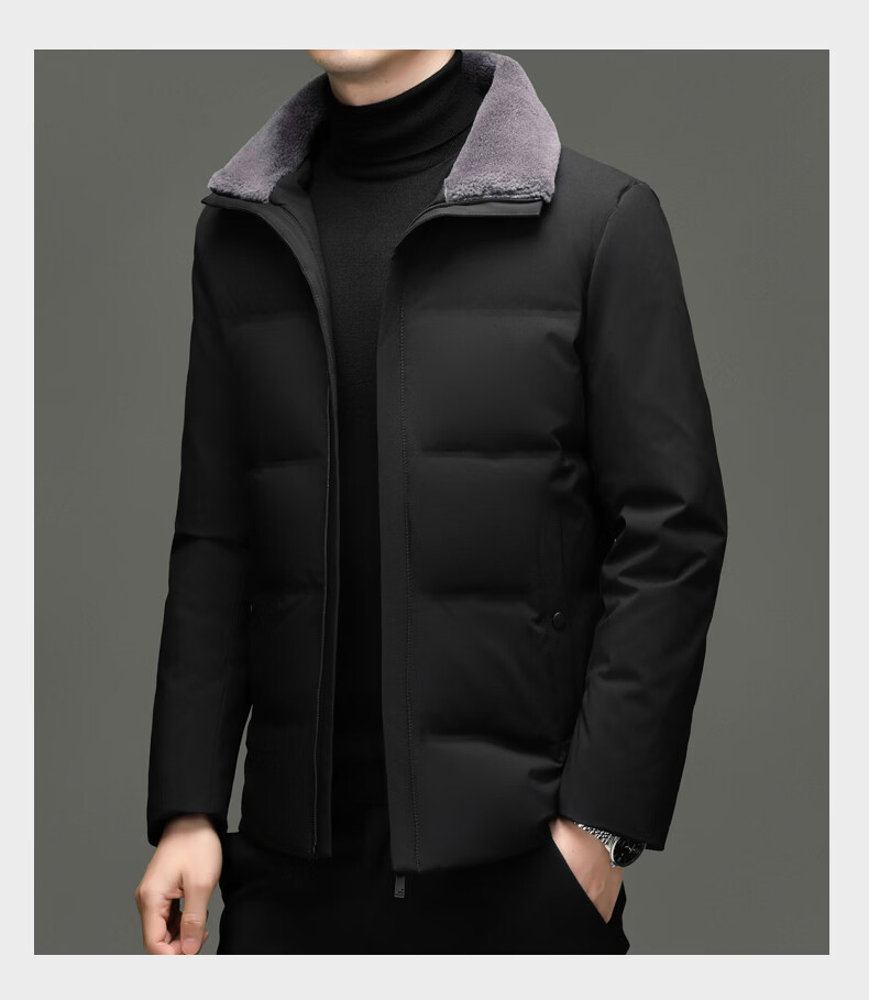 恒源祥男士羽绒服短款2025新款冬季爸爸装带毛领加厚保暖防寒外套 黑色 M 170